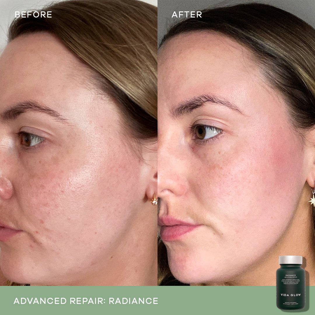 The next era of ingestible beauty. Vida Glow’s Advanced Repair range is a range of targeted ingestible beauty solutions for concerns such as pigmentation, hair loss and growth and acne. The Advanced Repair range includes Radiance, Hairology and Clear and is powered by revolutionary technology, science-backed actives and proven results.Radiance: Luminous skin, all year long