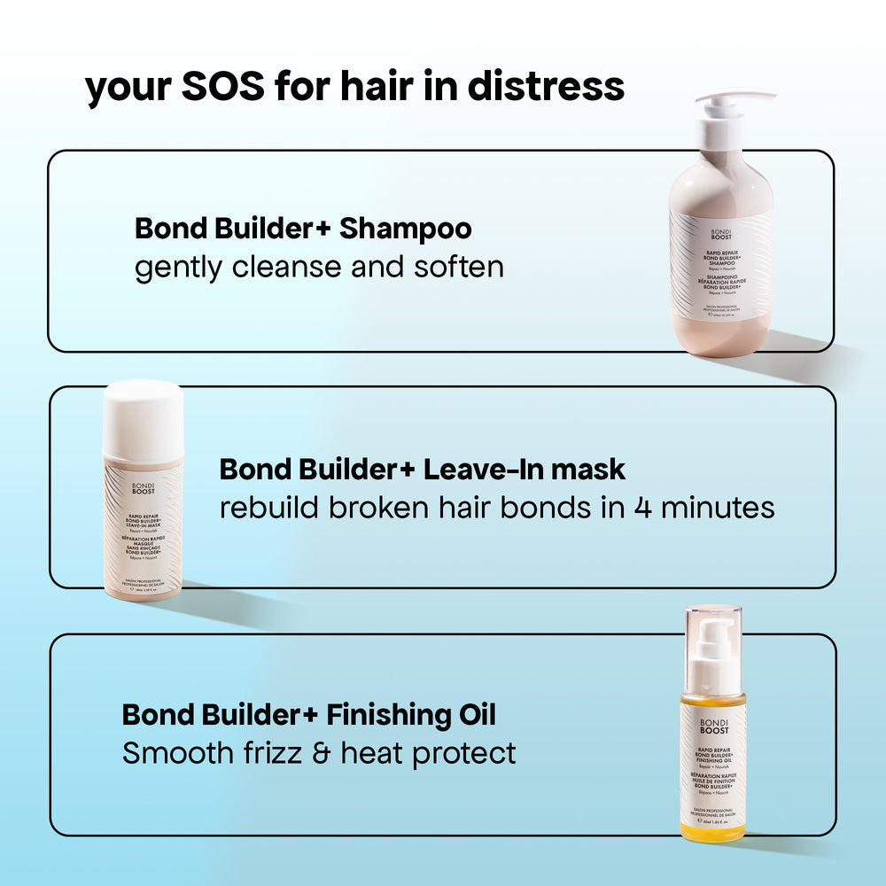 An SOS for hair in distress, meet the new & improved, Rapid Repair Bond Builder+ Shampoo. The iconic repairing shampoo got an upgrade, now with plant-based bond technology to clinically reverse damage and repair breakage. The updated formula is more lightweight, providing the hydration your strands need without weighing down fine hair.
