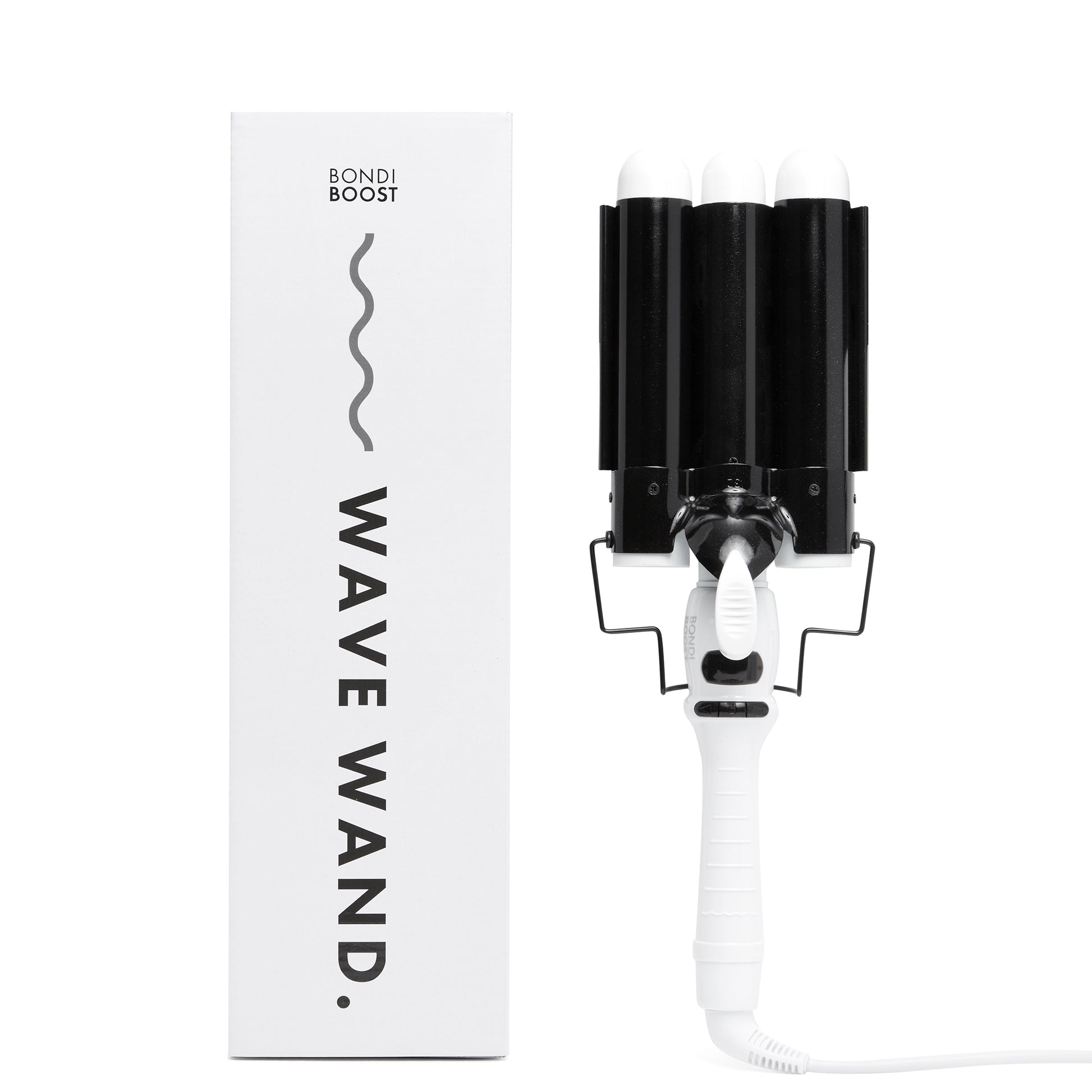 The Wave Wand is this season's hottest trending tool for creating the perfect mermaid, boho or beachy waves. Featuring 3 x extra large barrels, it’s easy to use with one simple clamp. The heated ceramic produces negatively charged ions that create soft, shiny waves without any frizz. And unlike single barrel styling irons that take ages to curl hair, this 3 barrel curling iron does it in seconds.