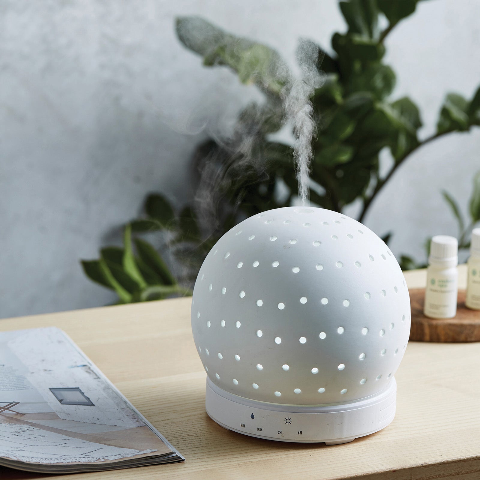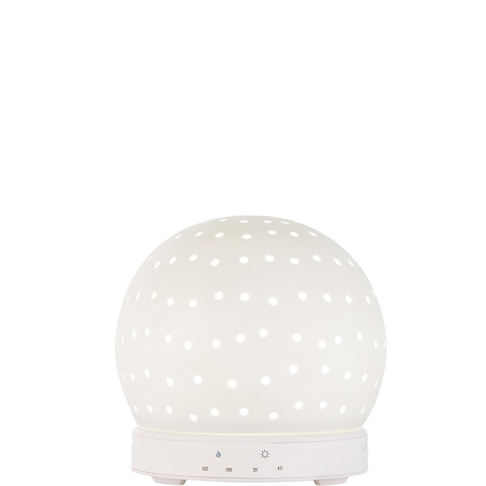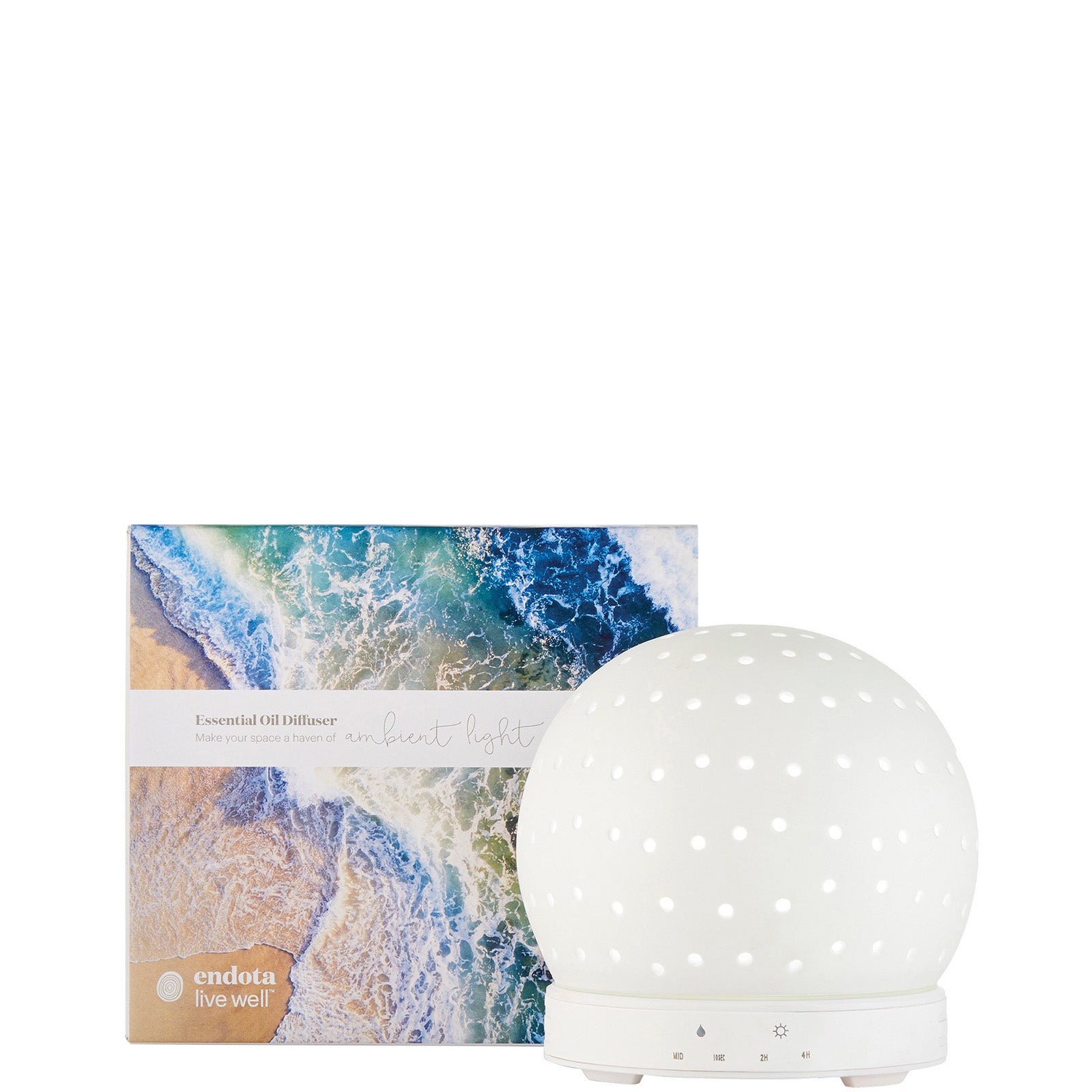 Add wellness-inspired style to any room with this elegant, ceramic essential oil diffuser from endota. Prepare to experience the full benefits of your aromatherapy as ultra-sonic technology finely disperses your chosen endota spa essential oils into the air. The perforated, spherical design casts dappled white light into your space, creating gentle warmth and a peaceful, relaxing ambience.