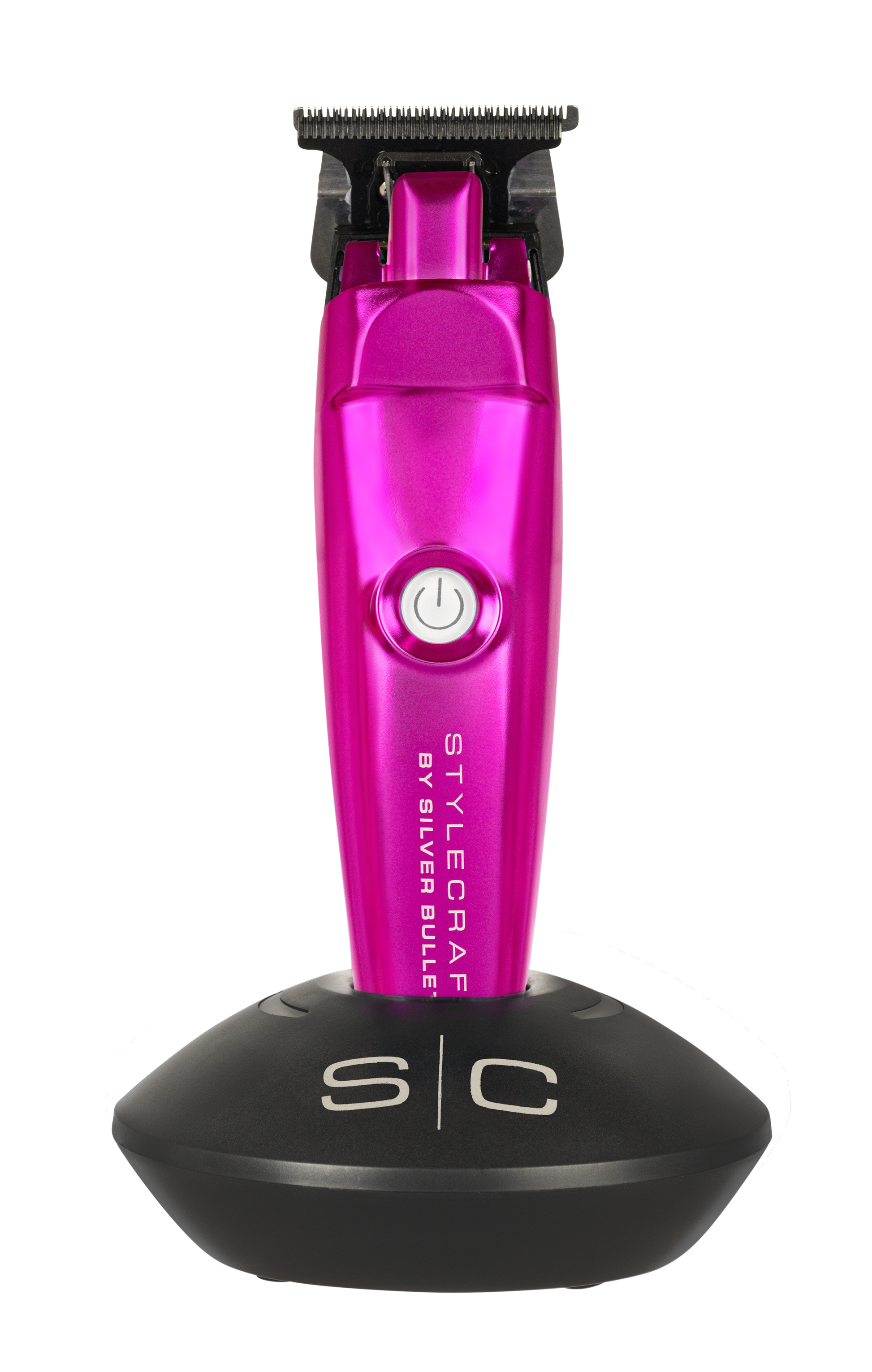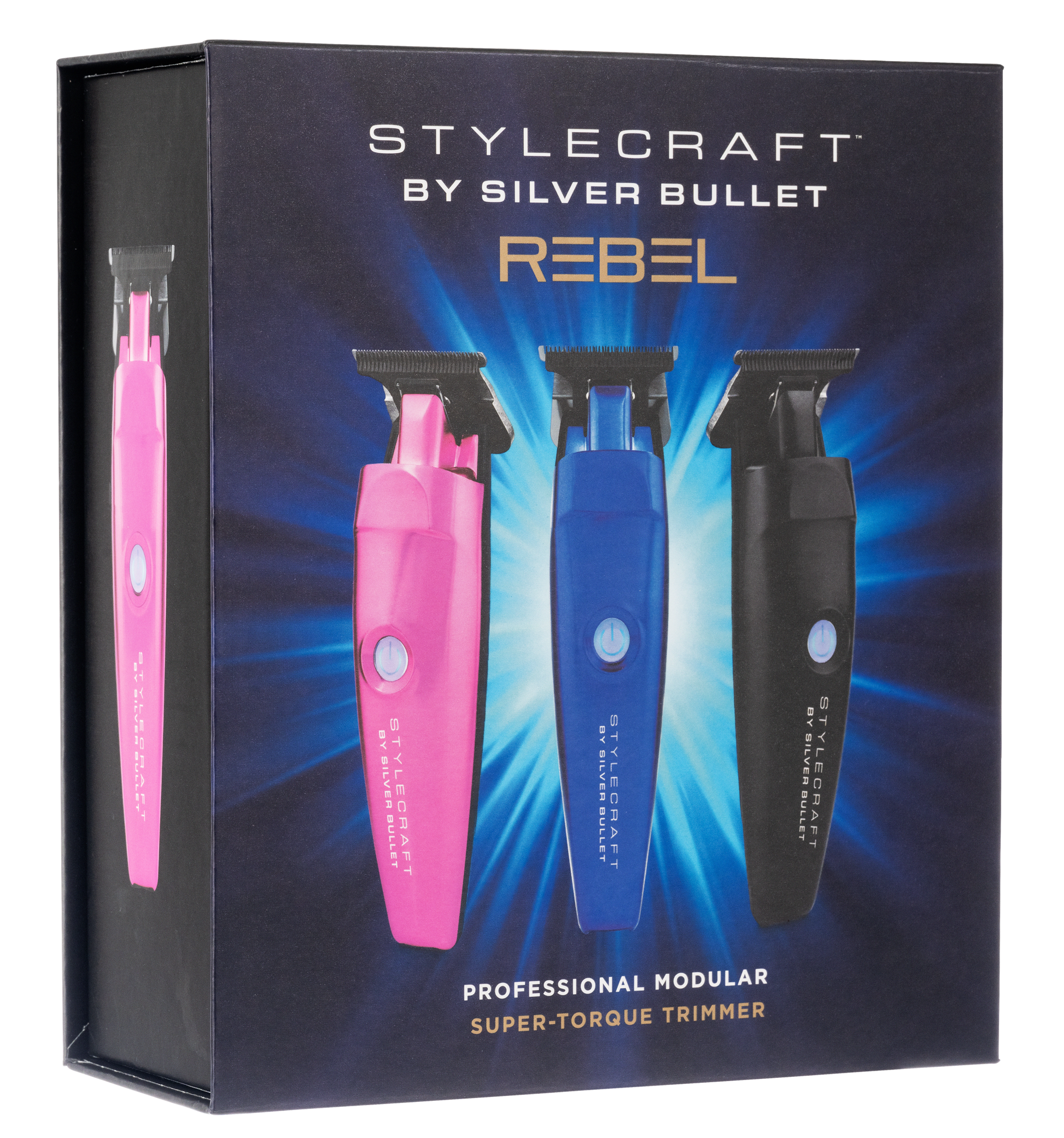 StyleCraft by Silver Bullet Rebel Hair Trimmer is all about super-torque and super customisation. Super-torque motor runs at 7,500 RPM for optimised bulk removal and creating the sharpest lines with a single tap. Fixed stainless steel X-Pro wide blade and DLC shallow tooth 2.0 cutting blade for the smoothest, crunchiest cutting and ultra-sharp lines. Fully adjustable blade is easily zero gapped. Skeleton design for 360° of visibility. Lithium battery with 3 hours of cordless runtime. Micro USB rechargeable. Compact and lightweight with an ergonomic design. The best bit? Pink, blue and black interchangeable body kits for ultimate customisation.