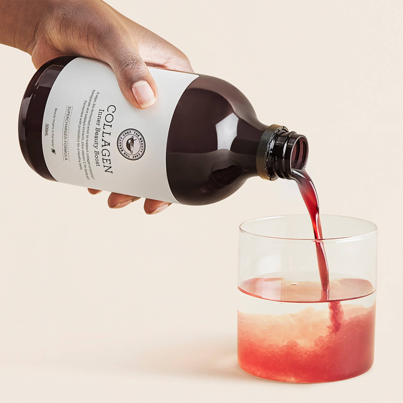Mix 1 tbsp (15mL) in 200mL of water, a smoothie or your favourite drink and consume immediately. 1 - 2 serves per day. For optimal results, COLLAGEN should be consumed daily in chilled or room temperature beverages and can be taken with any other Beauty Chef product.