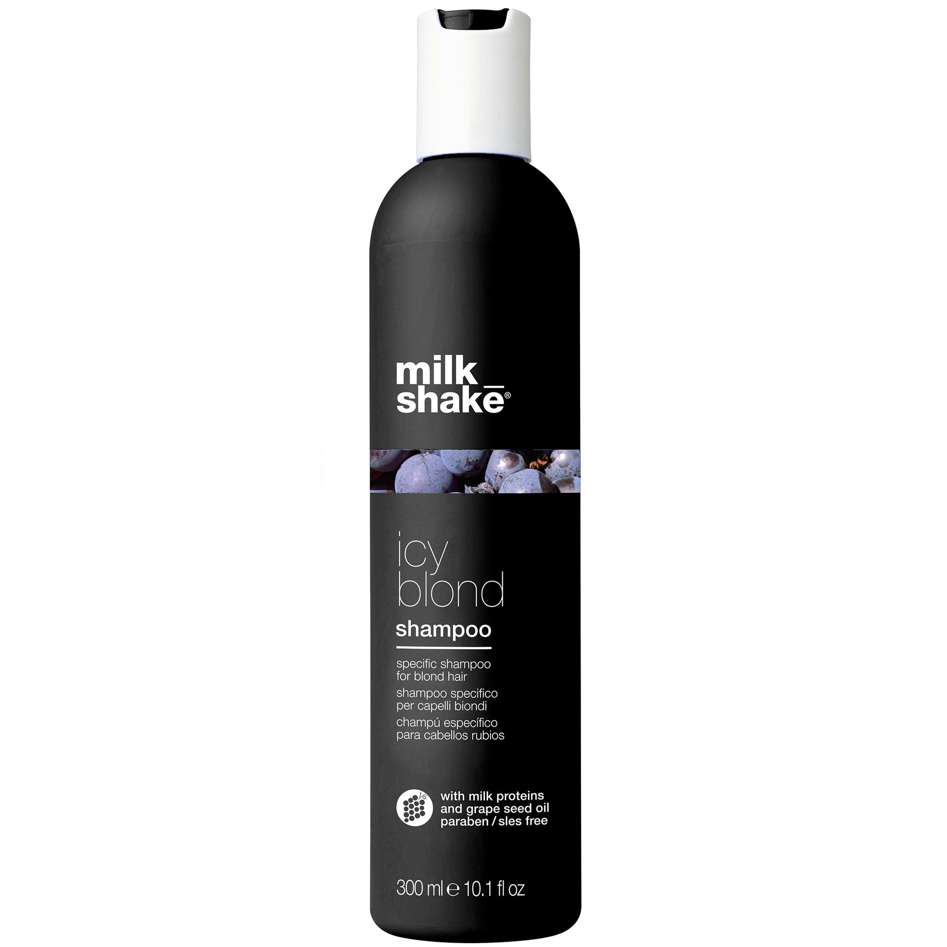 milk_shake icy blond shampoo is a specific shampoo for blonde hair. The special black pigment contained within the new milk_shake icy blond range, gives delicate ash tones to very light blonde hair or platinum blonde hair. Prolongs the effects of grey,ash or silver tones. It helps to neutralizes and counteracts unwanted yellow or brassy tones in blonde hair. The shampoo is ideal for very light blonde or platinum blonde hair. Not recommended for grey or white hair. SLES & paraben-free