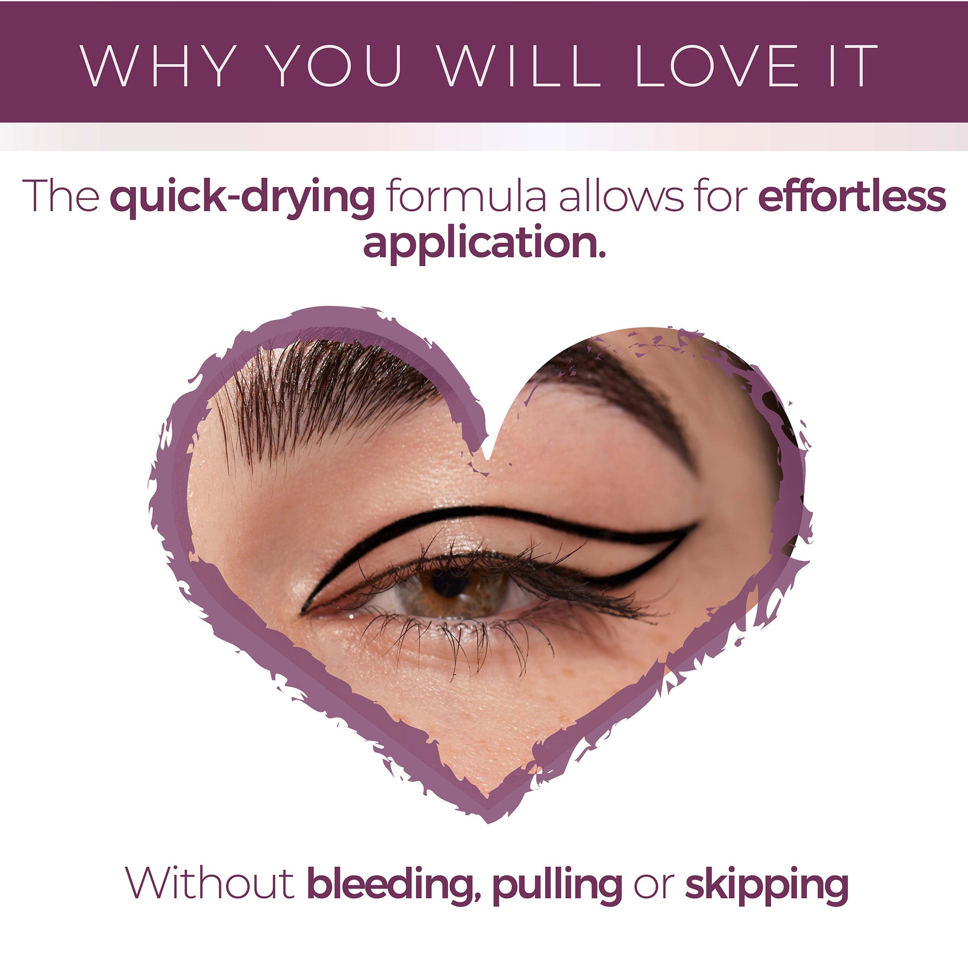 Its smooth-gliding tip and comfortable pen design provide excellent control, whether creating dramatic wings or subtle definition. The quick-drying formula prevents transfer and keeps eyes looking polished all day.
