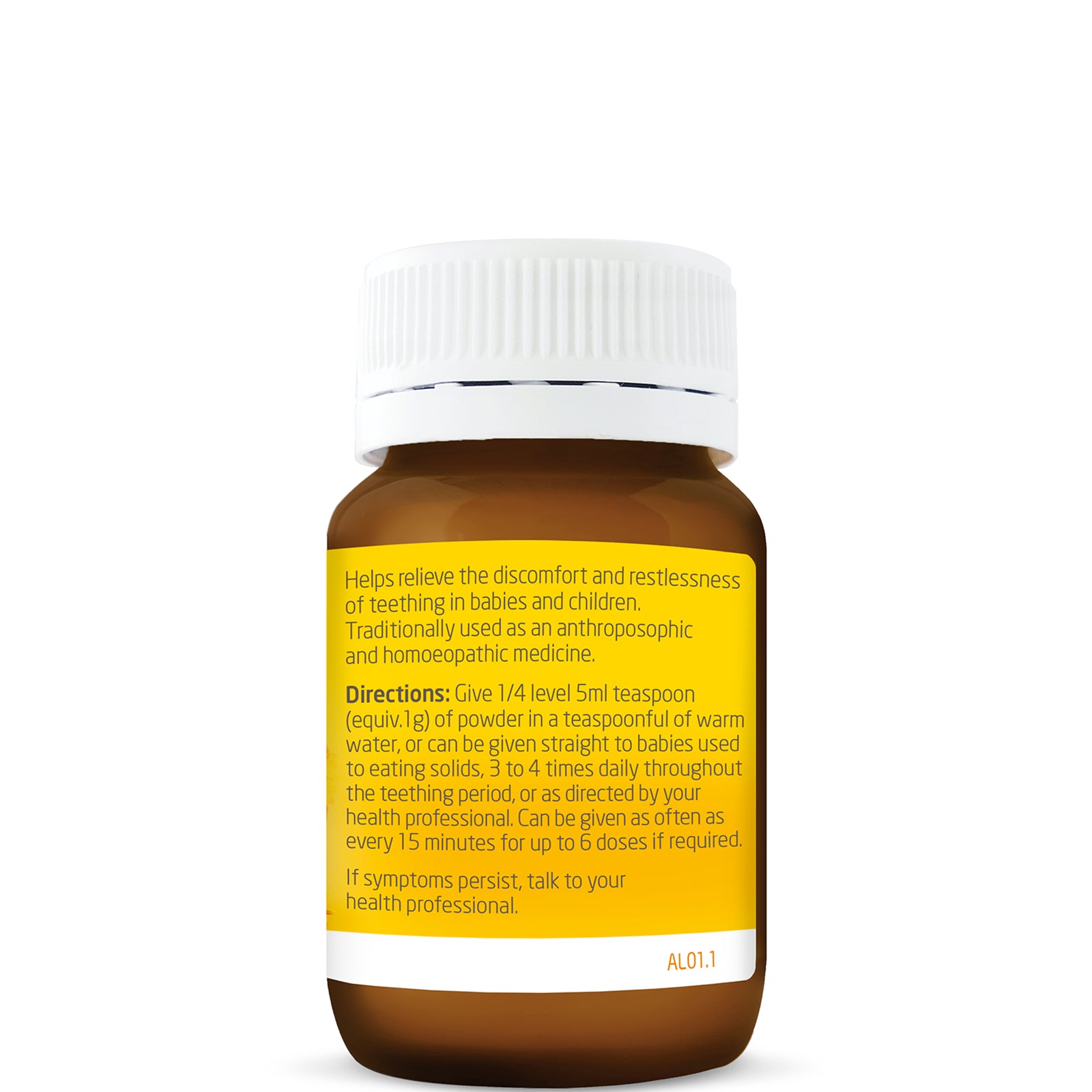 Baby Teething Powder combines homoeopathic ingredients, traditionally used in anthroposophic and homoeopathic medicine, to help relieve the discomfort and restlessness of teething in babies and children. Helps calm and soothe.