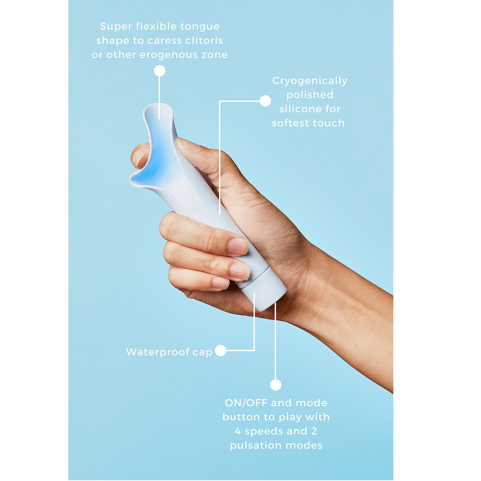 Move the Frenchman's flexible tongue up and down against the clitoris, breasts, or any erogenous zone for a sensual and ticklish massage.