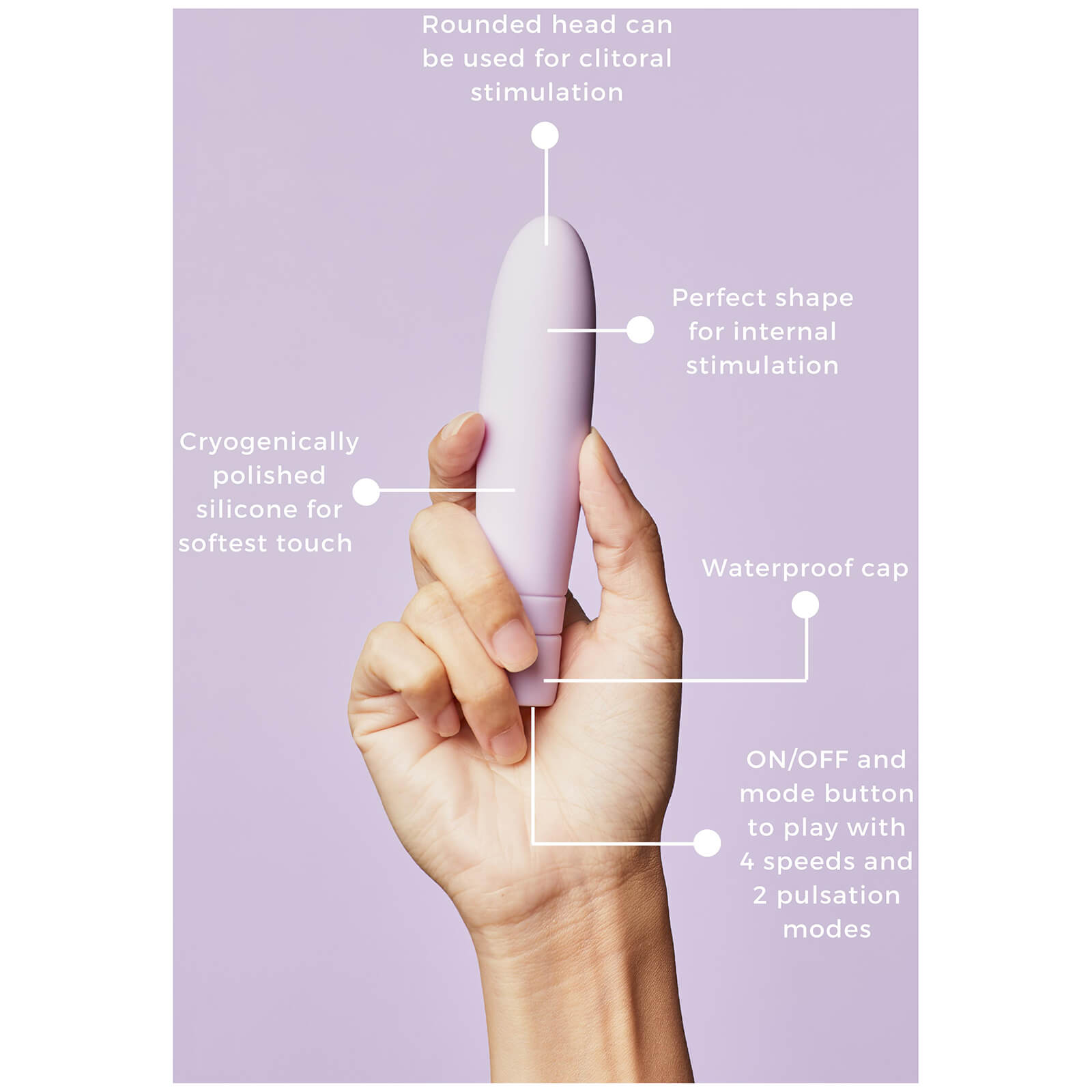 - Made of cryogenically polished and body-safe silicone approved by the USFDA