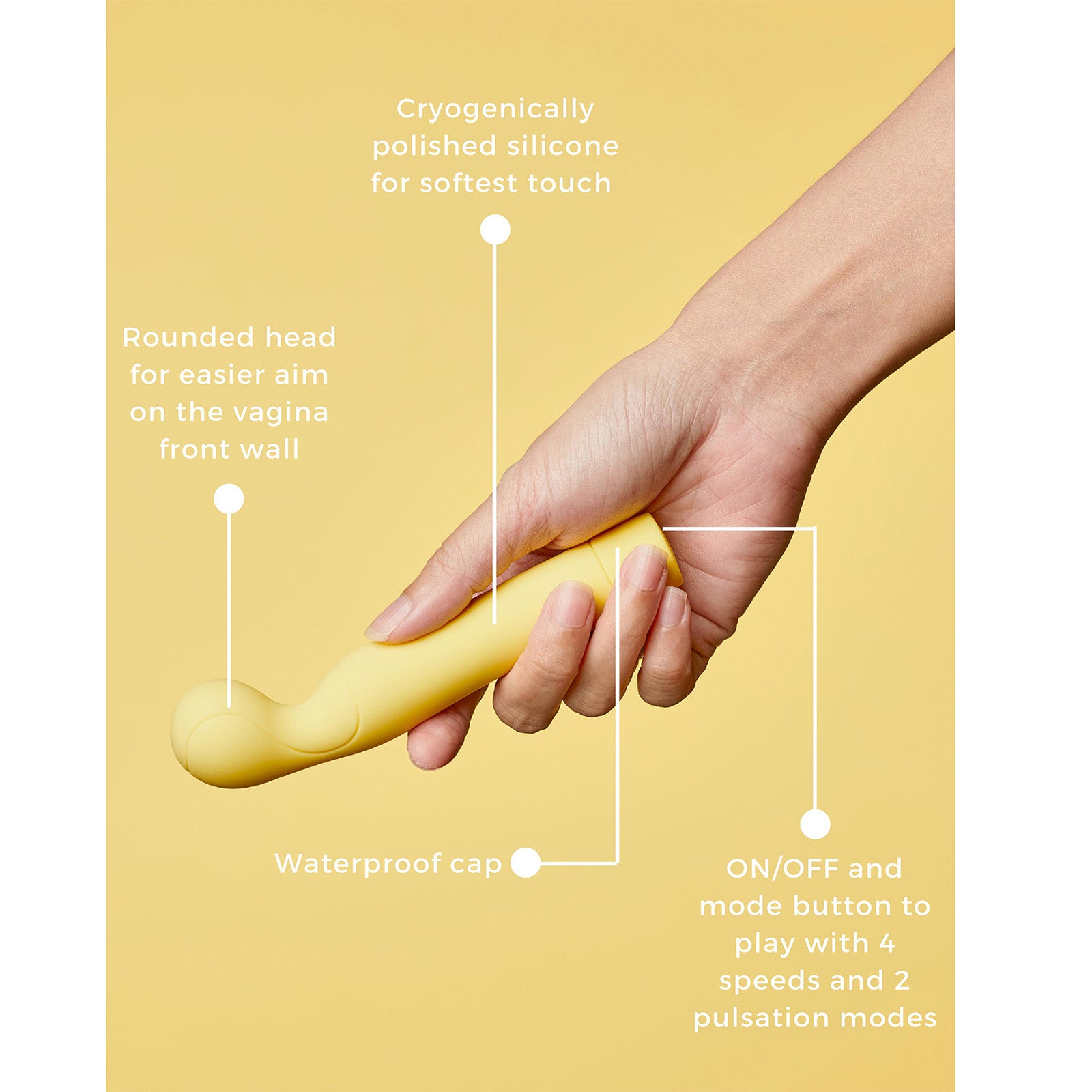 The Smile Makers G-Spot Vibrator is a playfully designed, dual-purpose vibrator created to stimulate both externally and internally. Made from premium silicone imported from Japan, the ergonomic vibrator has a rounded head and flexible neck which allows it to send perfectly aimed vibrations to the elusive G-Spot, or gently tease the clitoris for a Grand Slam orgasm.