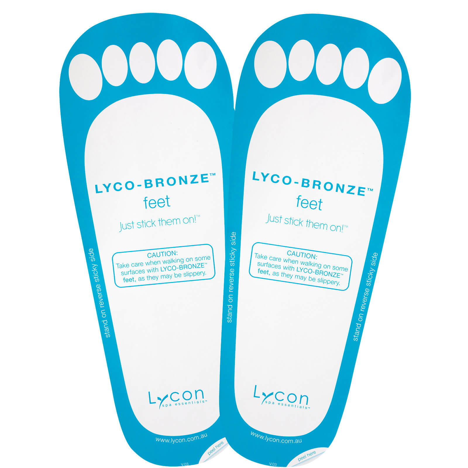 LYCO-BRONZE Sticky Feet are the perfect spray tanning accessory! Stick these bright and fun feet to clients' soles before spray tanning to protect soles from absorbing excess solution and save your salon from messy tan stains.