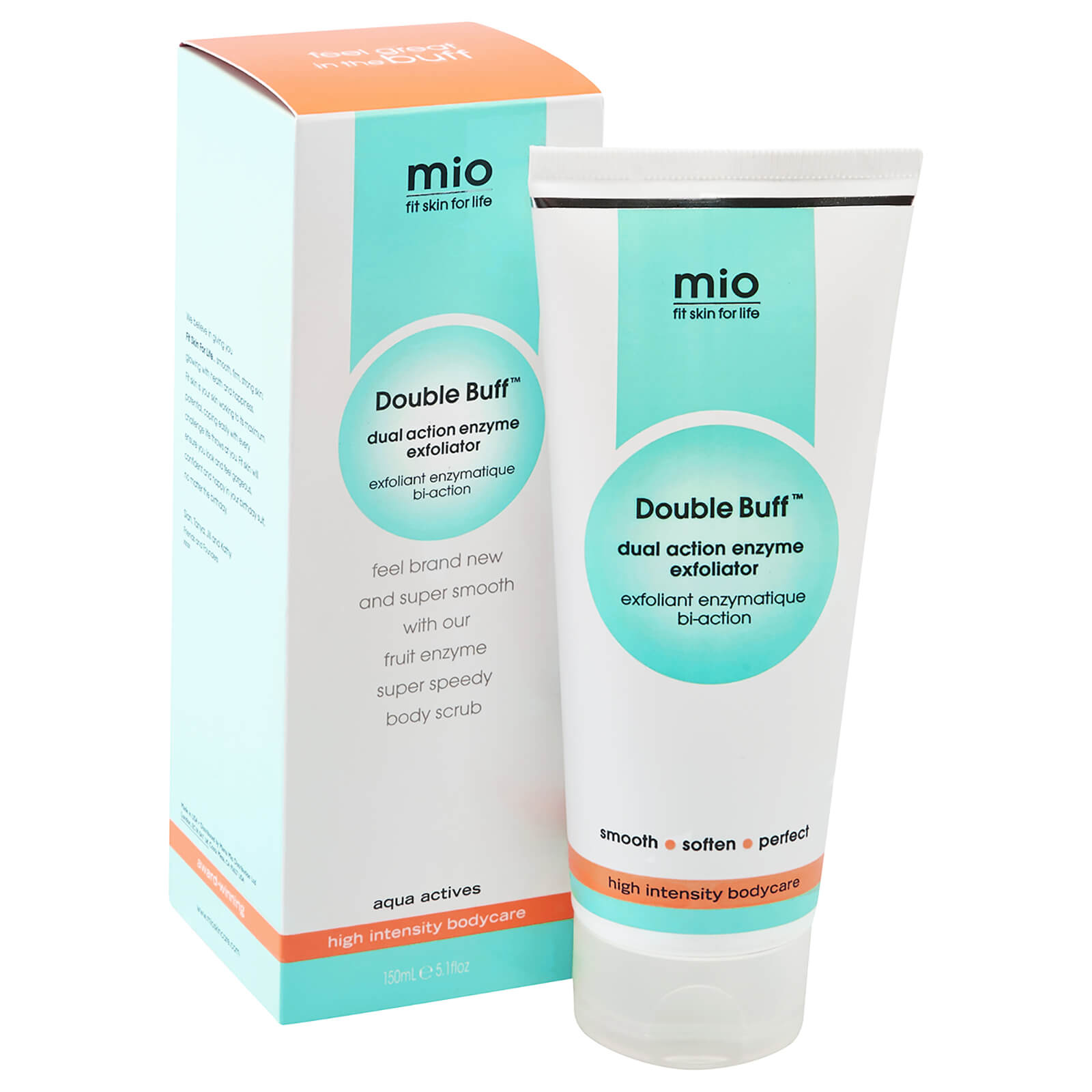 Eliminate rough, dry and dull looking skin with the Mio Skincare Double Buff Dual Action Enzyme Exfoliator; a gentle yet effective formula that effortlessly scrubs, buffs and polishes the body.