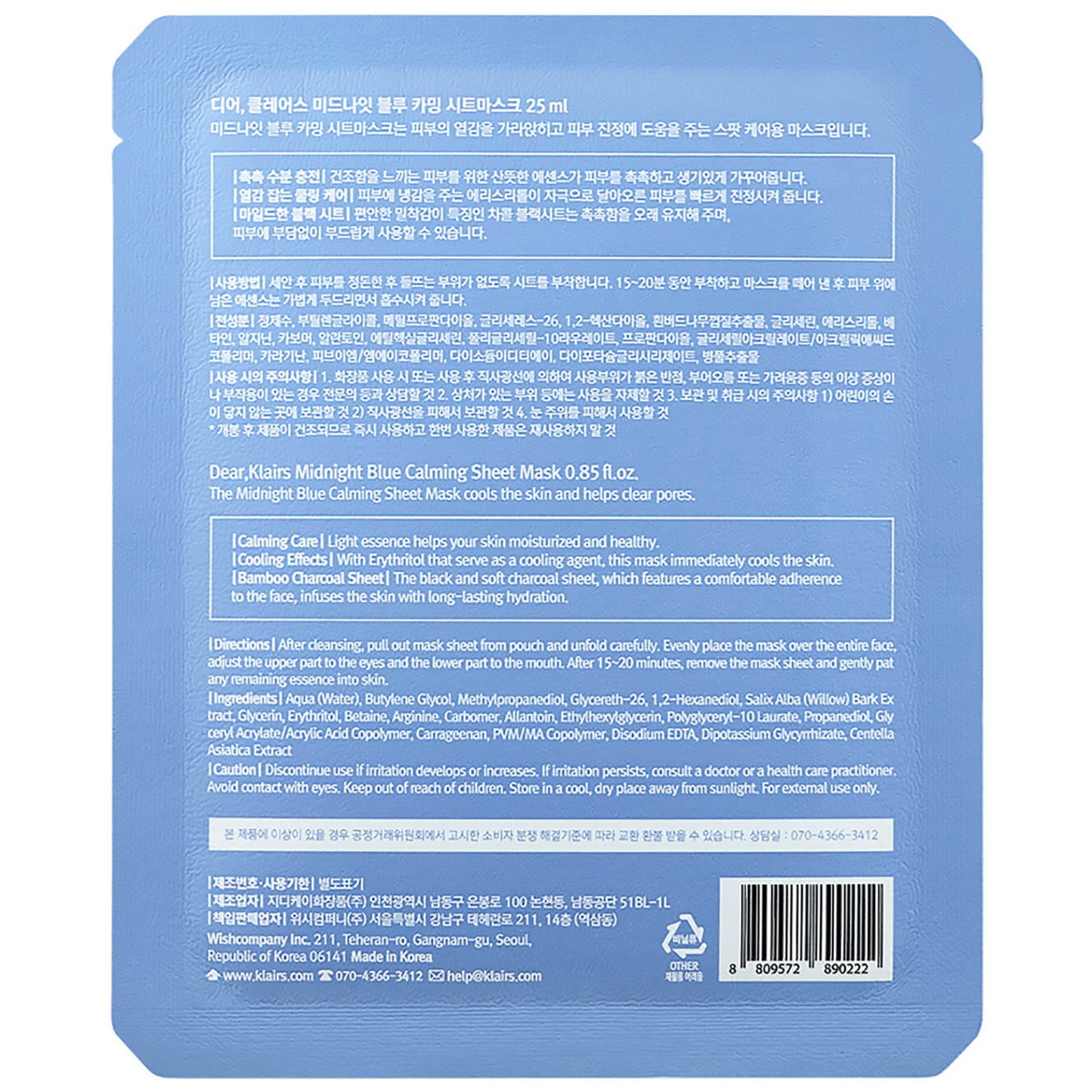 Dear, Klairs Midnight Blue Calming Sheet Mask 25ml