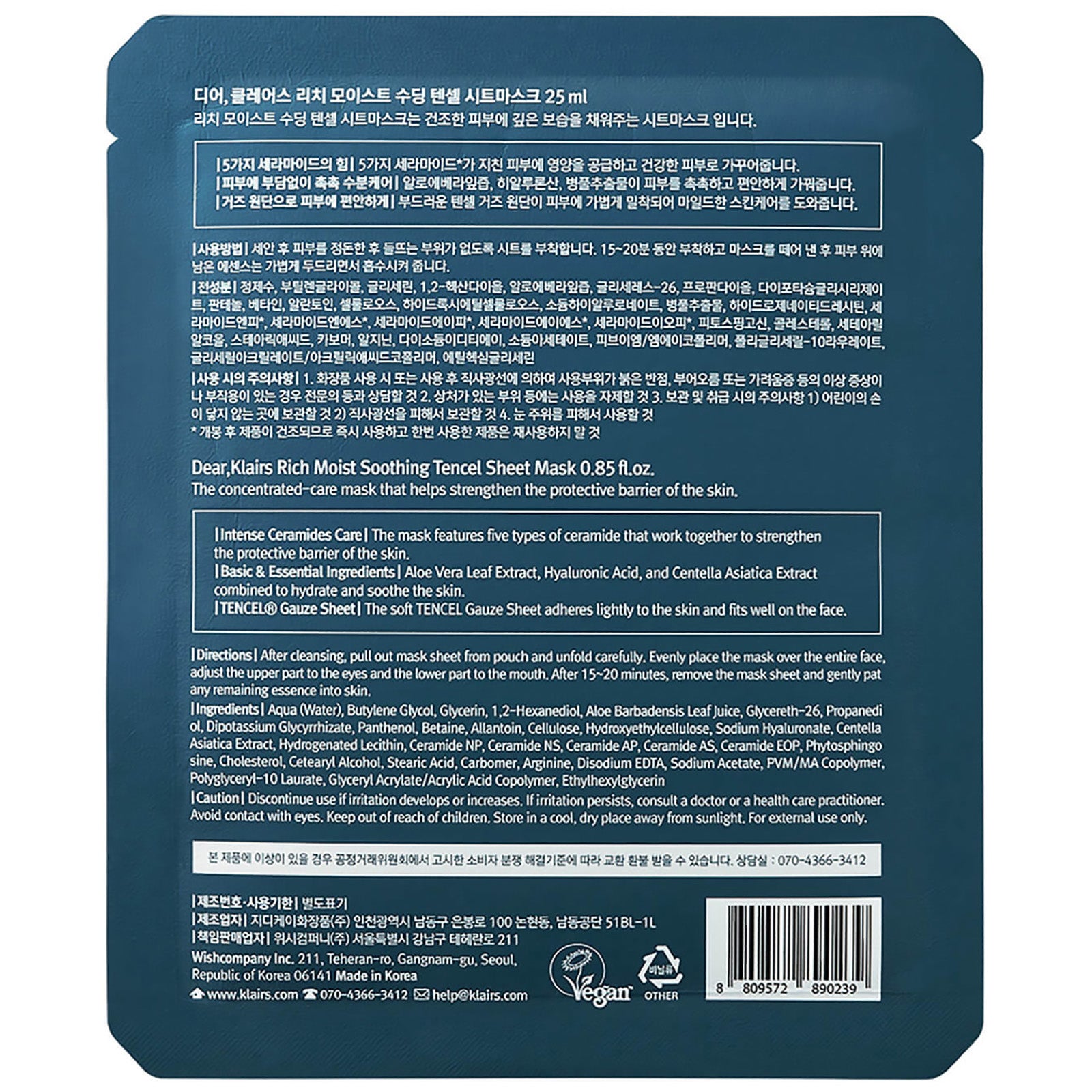Dear, Klairs Rich Moist Soothing Tencel Sheet Mask 25ml