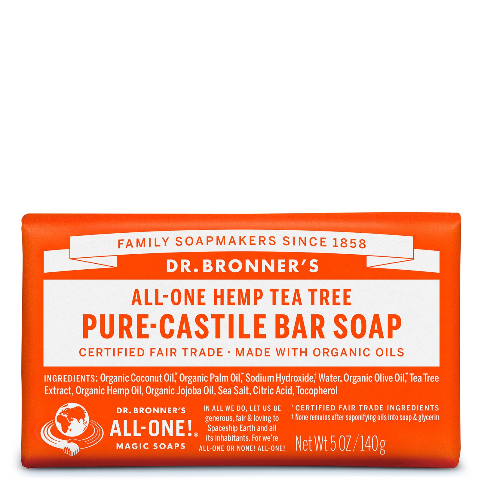 Woodsy and medicinal & our Tea Tree Pure-Castile Bar Soap contains pure tea tree oil & good for acne-prone skin and dandruff! Dr. Bronner's Bar Soap is made with certified fair trade ingredients and organic hemp oil for a soft, smooth lather that won't dry your skin.