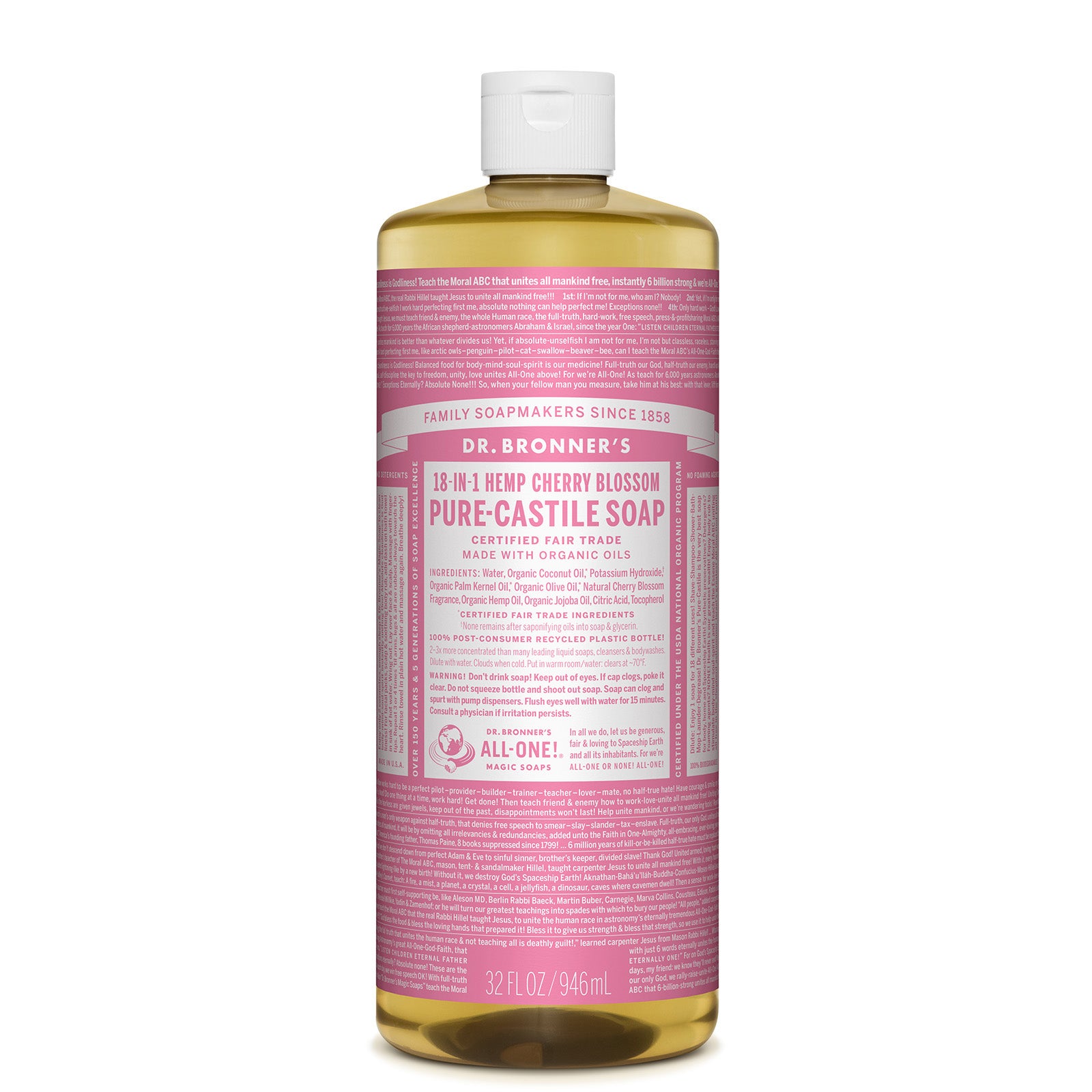 Sweet spring is in the air with our Cherry Blossom Pure-Castile Liquid Soap. Dr. Bronner's soap is concentrated, biodegradable, versatile and effective.