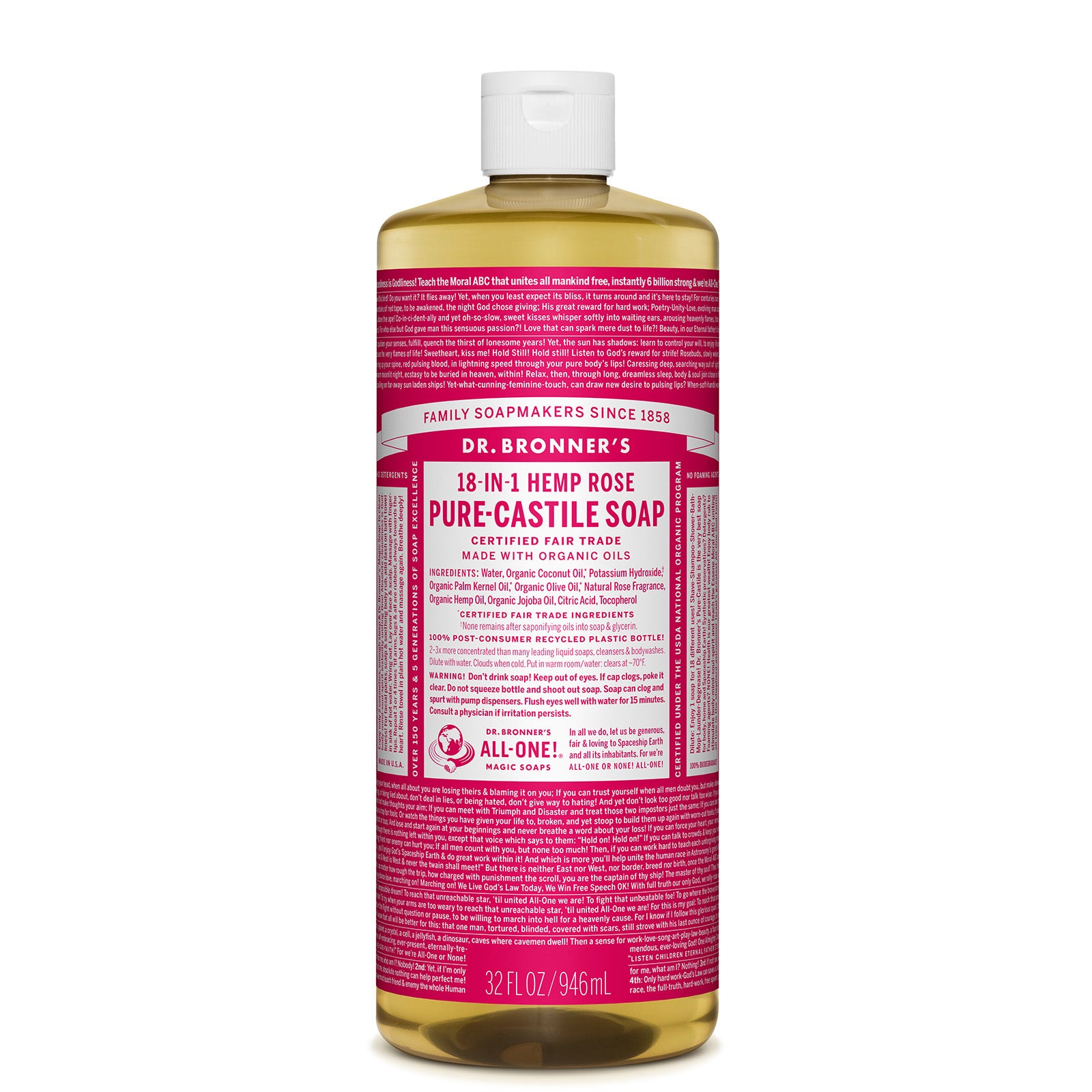 Dr. Bronner's Pure Castile Liquid Soap - Rose 946ml