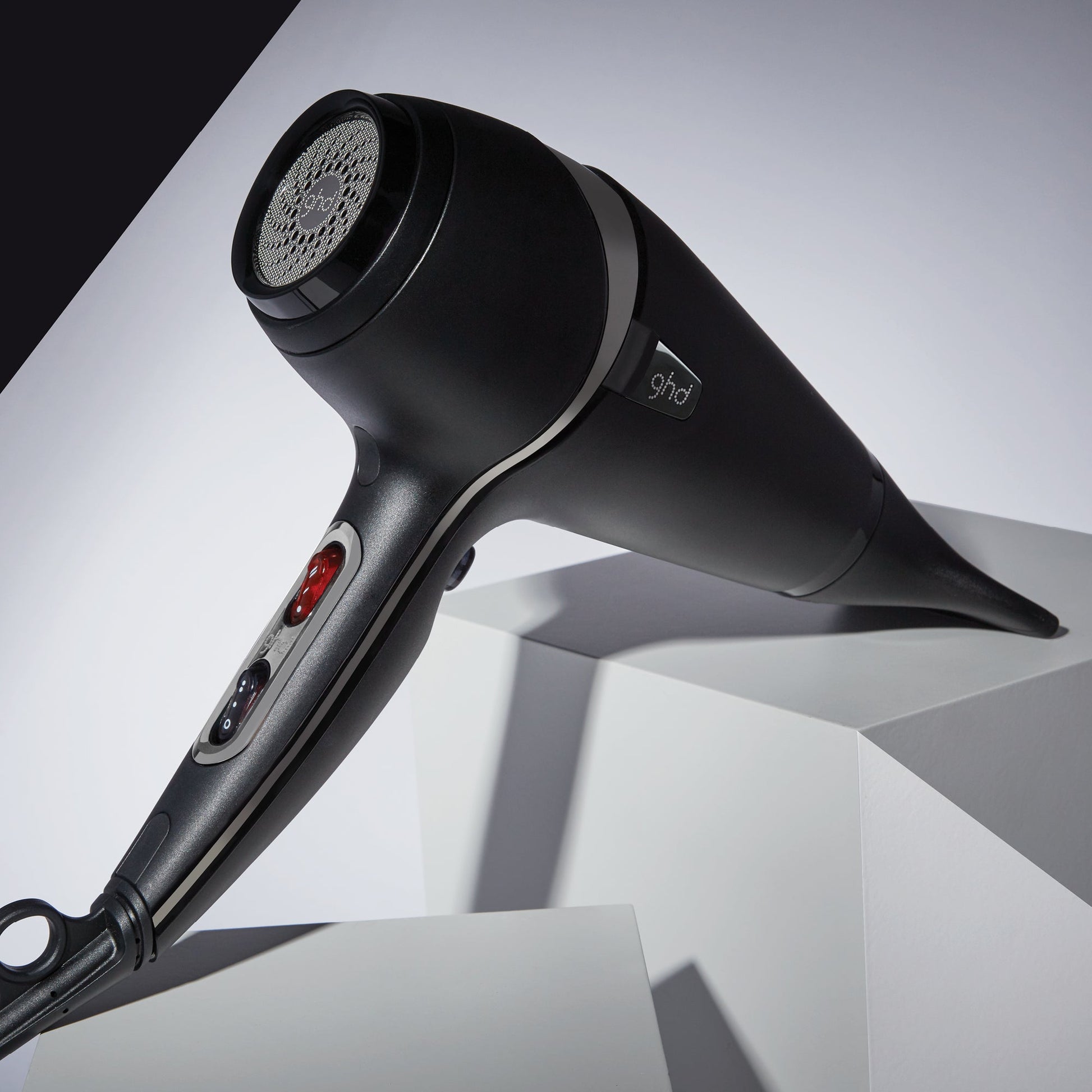 The ghd air professional hair dryer gives salon worthy blow-dries in minutes with faster drying from root to tip for sleeker, smoother and shinier blow-dries. With a 2,100W professional-strength motor and advanced ionic technology, this dryer delivers fast drying while reducing frizz and flyaways for a sleeker, smother shinier finish. The dryerís ergonomic design ensures it is comfortable to use for both left and right-handed users, making it a versatile tool for achieving a polished blowout. It also features a removable air filter for easy maintenance and a cool shot button that helps set your style in place with a blast of cold air.
