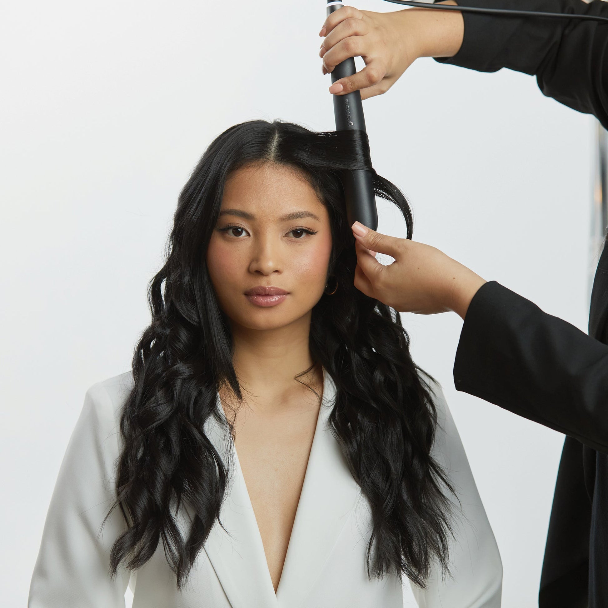 -Waves/Curls: For curls or waves, place the ghd chronos at the root, rotate it 180 degrees, and glide down the section to create beautiful, bouncy curls or soft waves.