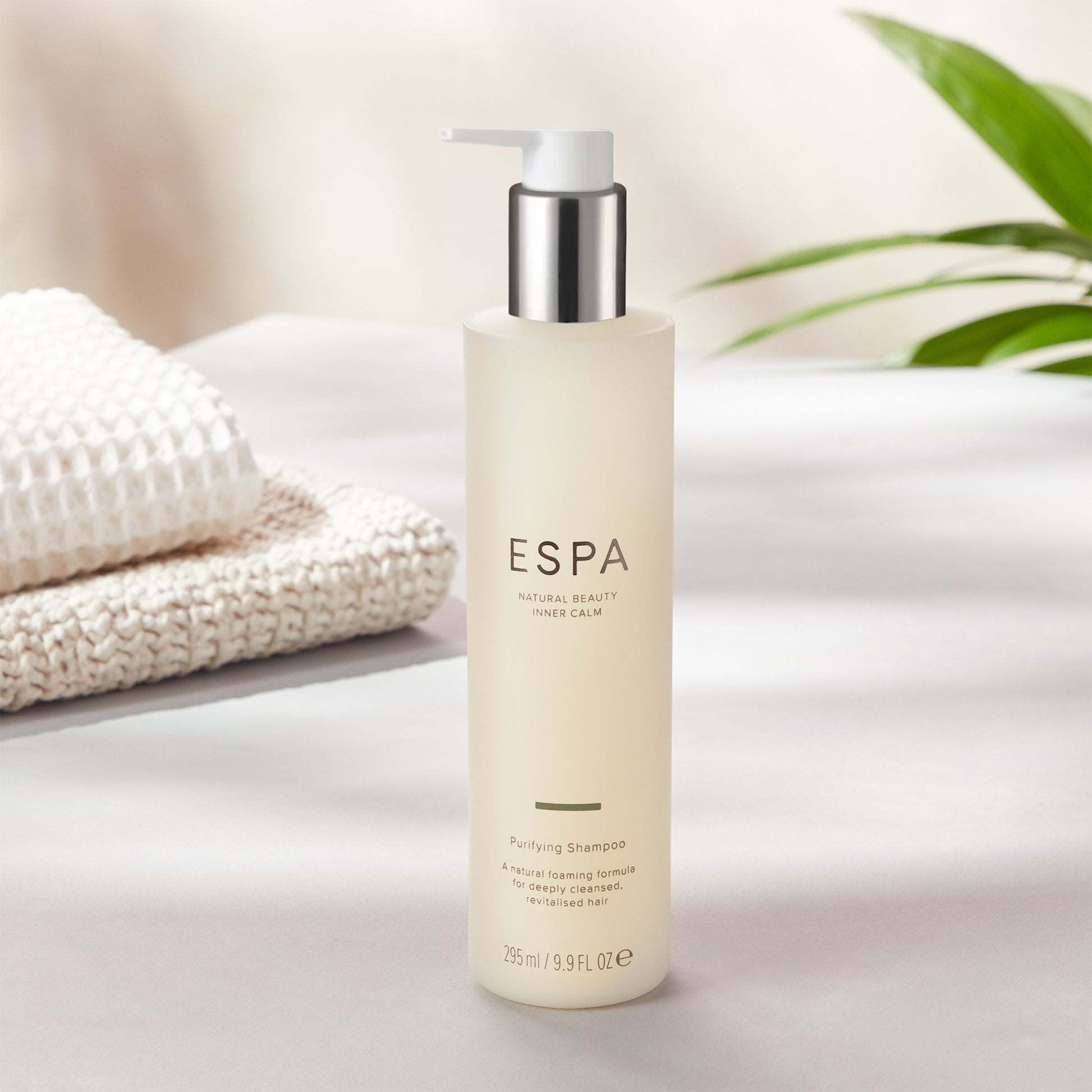 Suitable for all hair types, including colour-treated hair, ESPA's Purifying Shampoo is a rich and creamy formula that effectively removes product build-up without disrupting the scalp's natural balance. Coconut, jojoba and olive oils condition for soft, silky hair, while honey and ProVitamin lock in moisture for visible strength and shine.