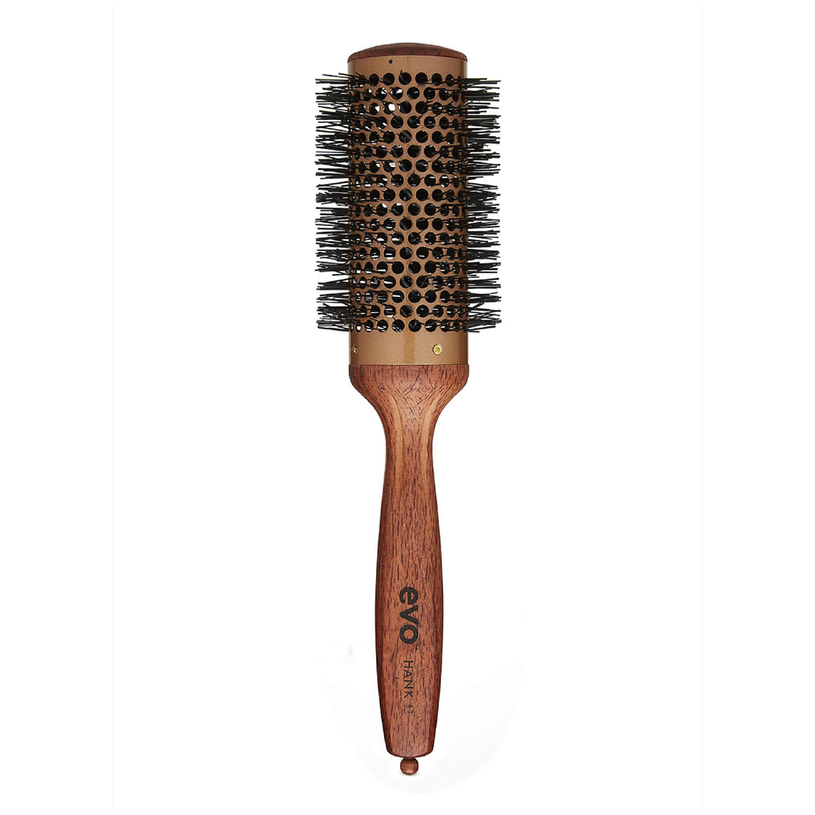 The 43mm Hank Radial Brush from Evo is a lightweight hairbrush that helps add volume and body to your blow dry. The ceramic-coated barrel is made from sustainable hardwood and features vent holes to circulate air and heat from the hairdryer, aiding drying time. The antistatic, ionic nylon bristles control frizz and flyaways and the handle is shaped to section the hair and make styling easier. Suitable for short, thicker hair of any style, the brush allows you to experience locks that are calm, manageable and healthy-looking. E.N.