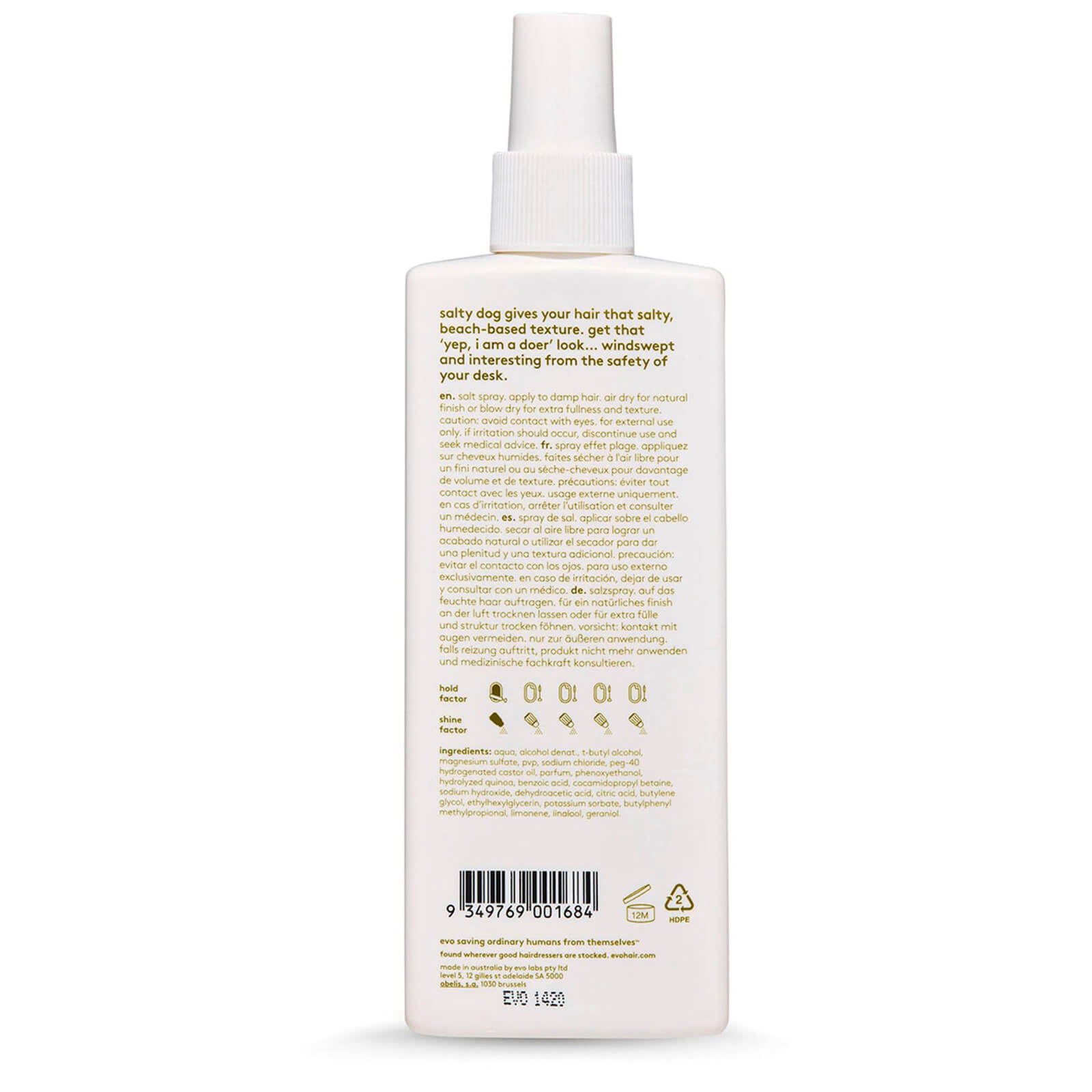 Evo salty dog cocktail beach spray gives your hair salty texture and fullness with matt finish, fresh from the beach malleability. Recommended for all hair types.