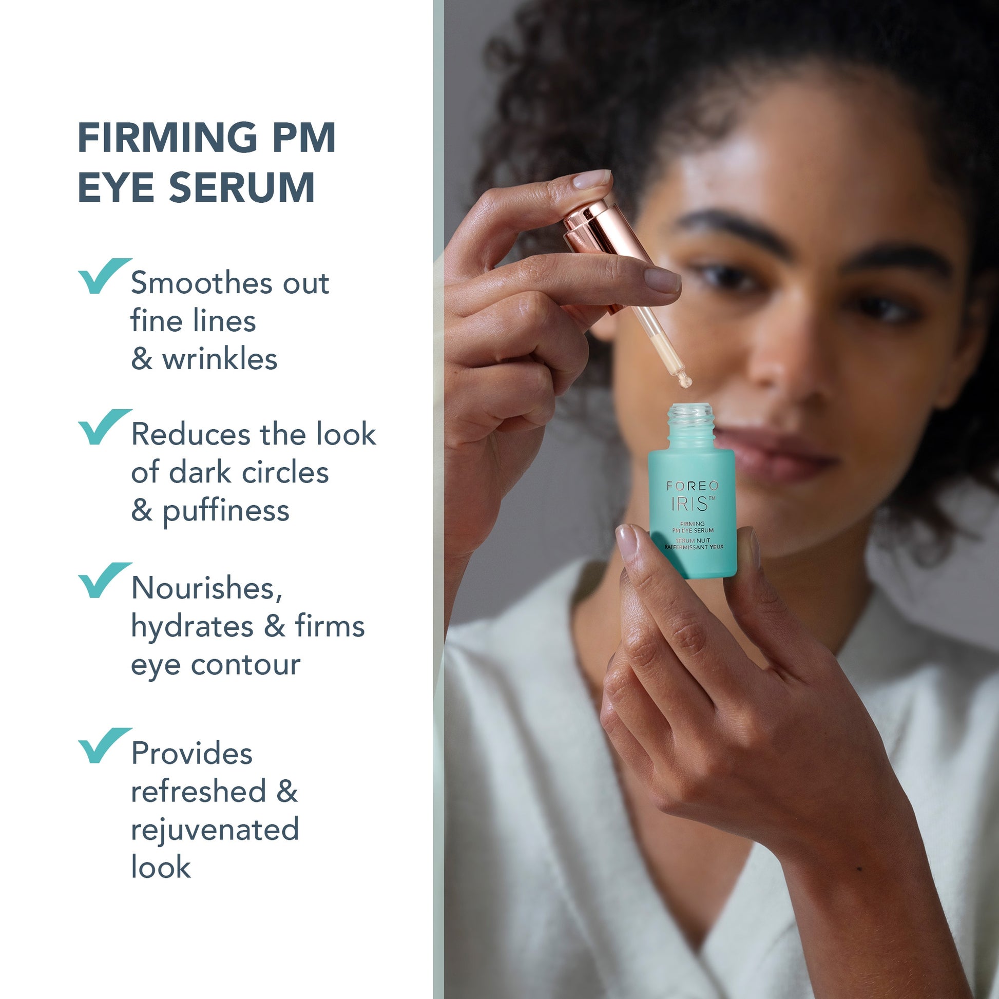 The IRISTM Evening Eye Serum with Retinol & Mushroom Extract is designed to help smooth fine lines and improve elasticity overnight. The serum contains potent yet gentle ingredients, 97% of which are naturally sourced, to help smooth out fine lines, hydrate, fight free radicals, and improve elasticity. The serum's texture is excellent for pre-bedtime application and can be used nightly. It can also benefit extremely dry, aging skin as a part of a daytime routine. For optimal results, combine with IRISTM 2 device to permiate the deeper layers of skin.