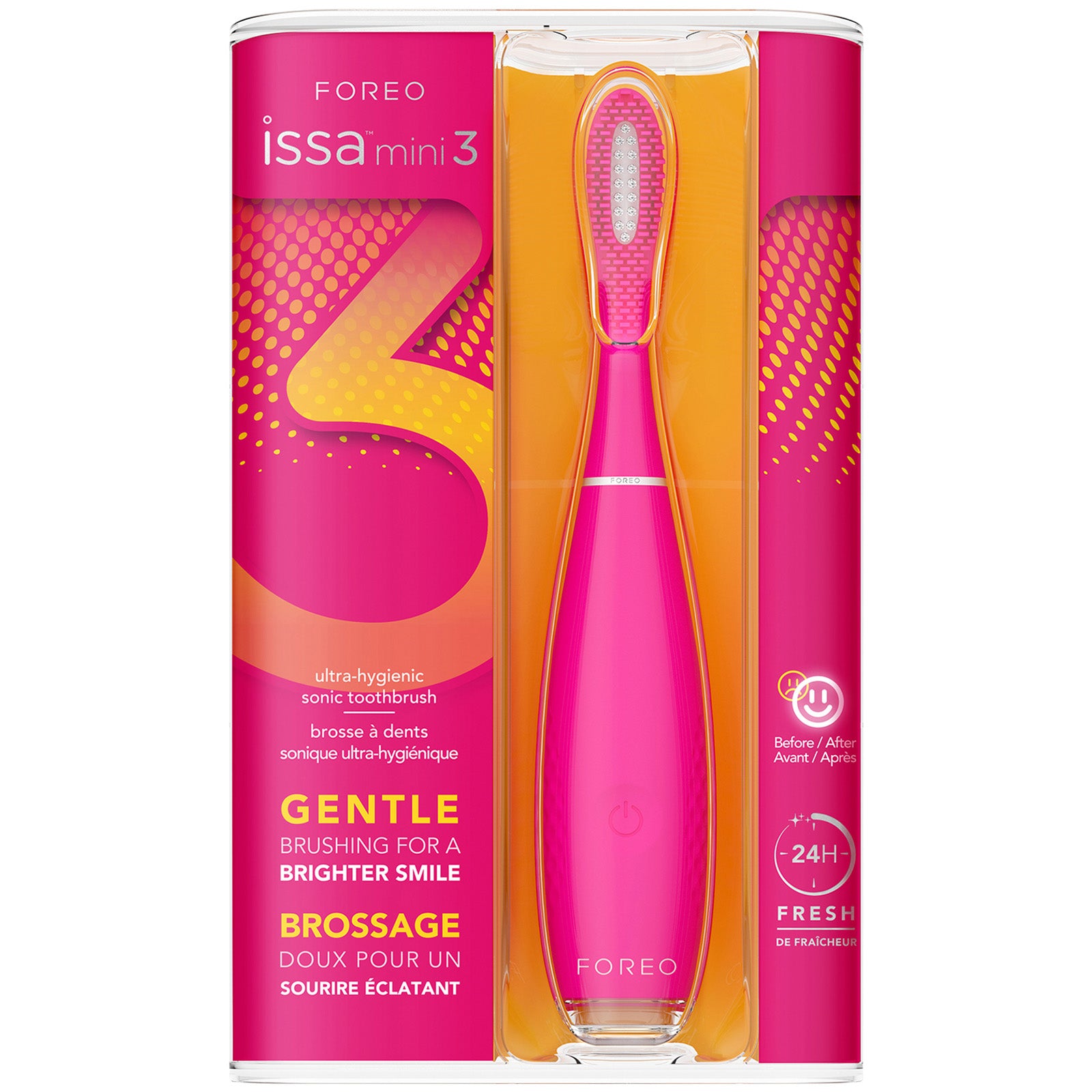 STEP 1 Apply toothpaste Apply your regular toothpaste on the bristles, and turn your ISSATM mini 3 on by pressing the universal button. STEP 2 Brush Brush your teeth in the same way you would with a manual toothbrush for 2 minutes. Your ISSATM mini 3 will prompt you to brush a new quadrant of the mouth every 30 seconds. STEP 3 Tongue & cheeks For a full-mouth clean, turn your brush around and use the back of the brush head to gently scrub the tongue and cheeks. STEP 4 Rinse Press the universal button again to turn your toothbrush off. Then rinse your mouth and ISSATM mini 3 with water.