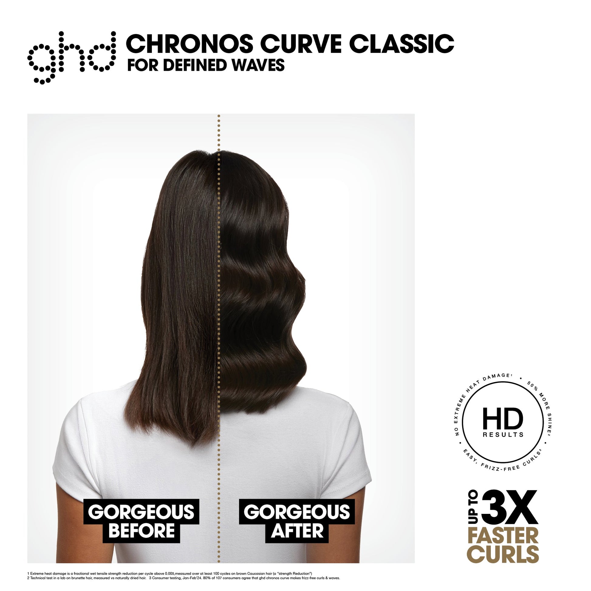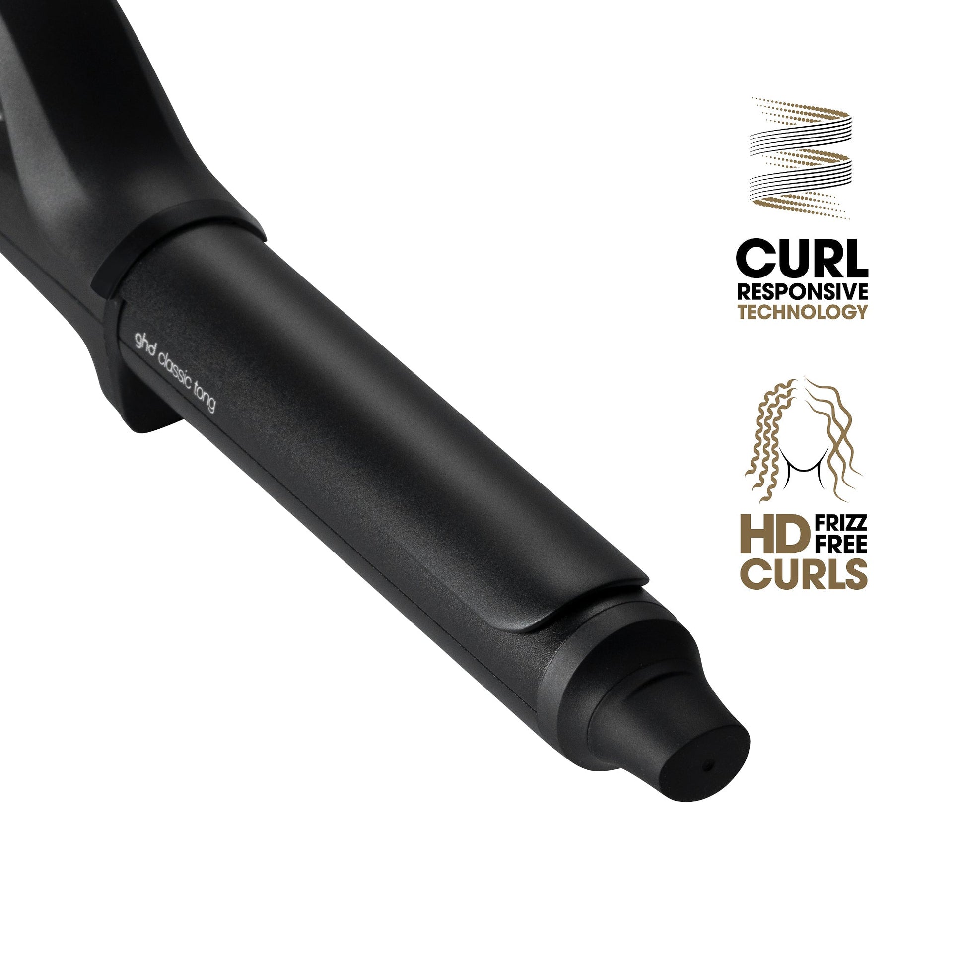 New GHD Chronos Curve, a new range of curlers with Curl-Responsive Technology for ultimate control of 185∞C across the barrel. Introducing, GHD Chronos Curve Classic Tong: for faster, high-definition results that last all day.