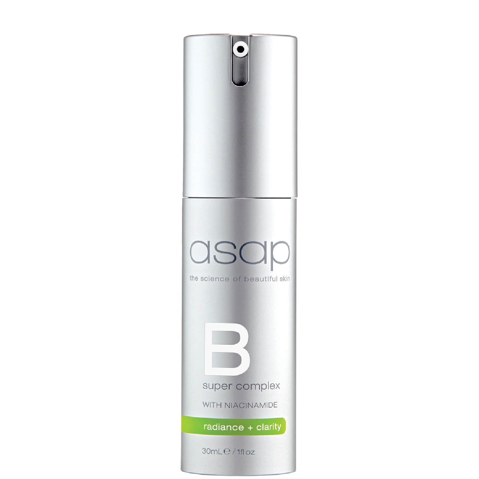 Achieve radiant and clear skin with the Super B complex serum from asap. Infused with a powerful blend of vitamin B3 (Niacinamide), B5 and B9 to boost collagen production whilst reducing pigmentation, can and scarring. With high levels of AHA and active ingredients including Resveratrol, that significantly boost skin hydration, the serum helps to regulate sebum production, improve skin tone whilst visibly reducing the appearance of fine lines and wrinkles.