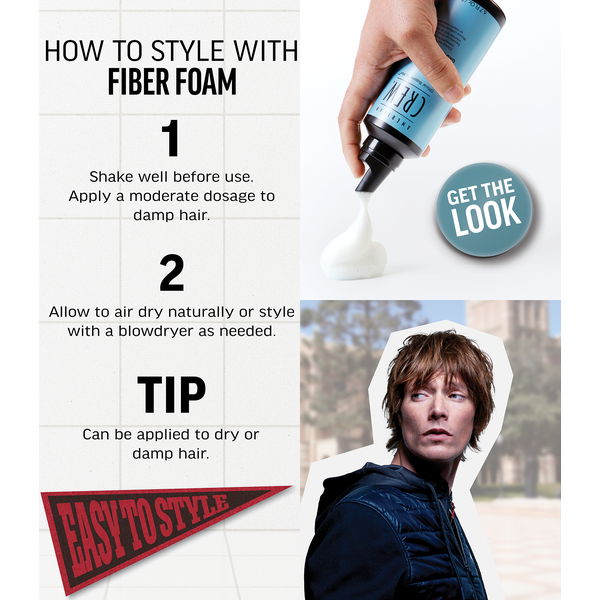 Lightweight, fibrous hair foam that provides long-lasting manageable volume with medium hold and natural shine. Works well with medium to longer length hair.