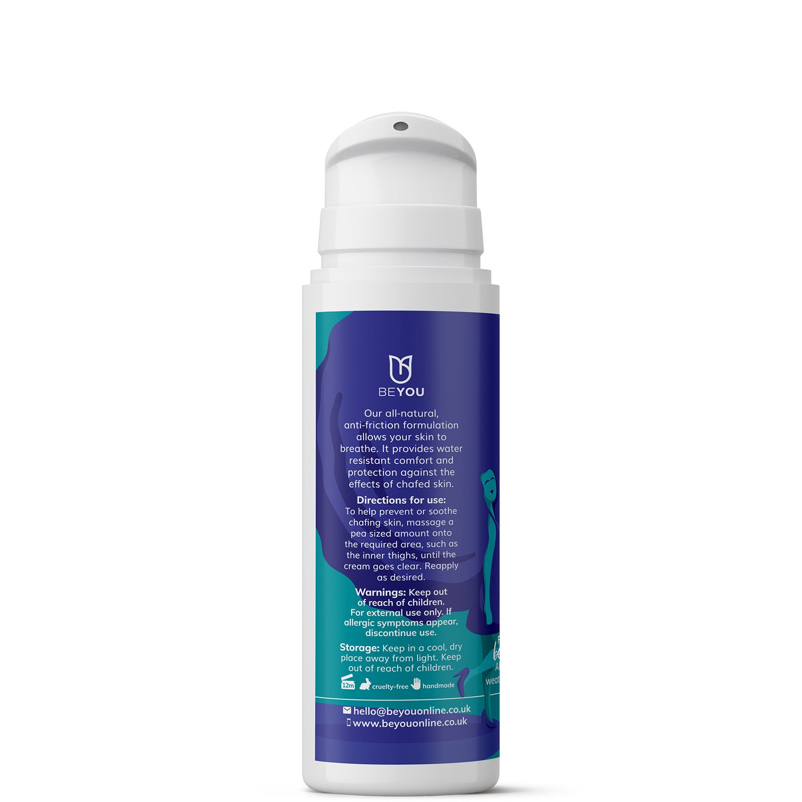 BeYou Chafing Cream feels silky smooth on the skin and protects areas prone to irritation, like your thighs or under-boob. This unique formula is made from smart, high performance ingredients designed to resist water and sweat, leaving a silky smooth veil over the skin. It reduces frictions and eases any areas agitated by friction, unlike petroleum jelly or other chub rub products.