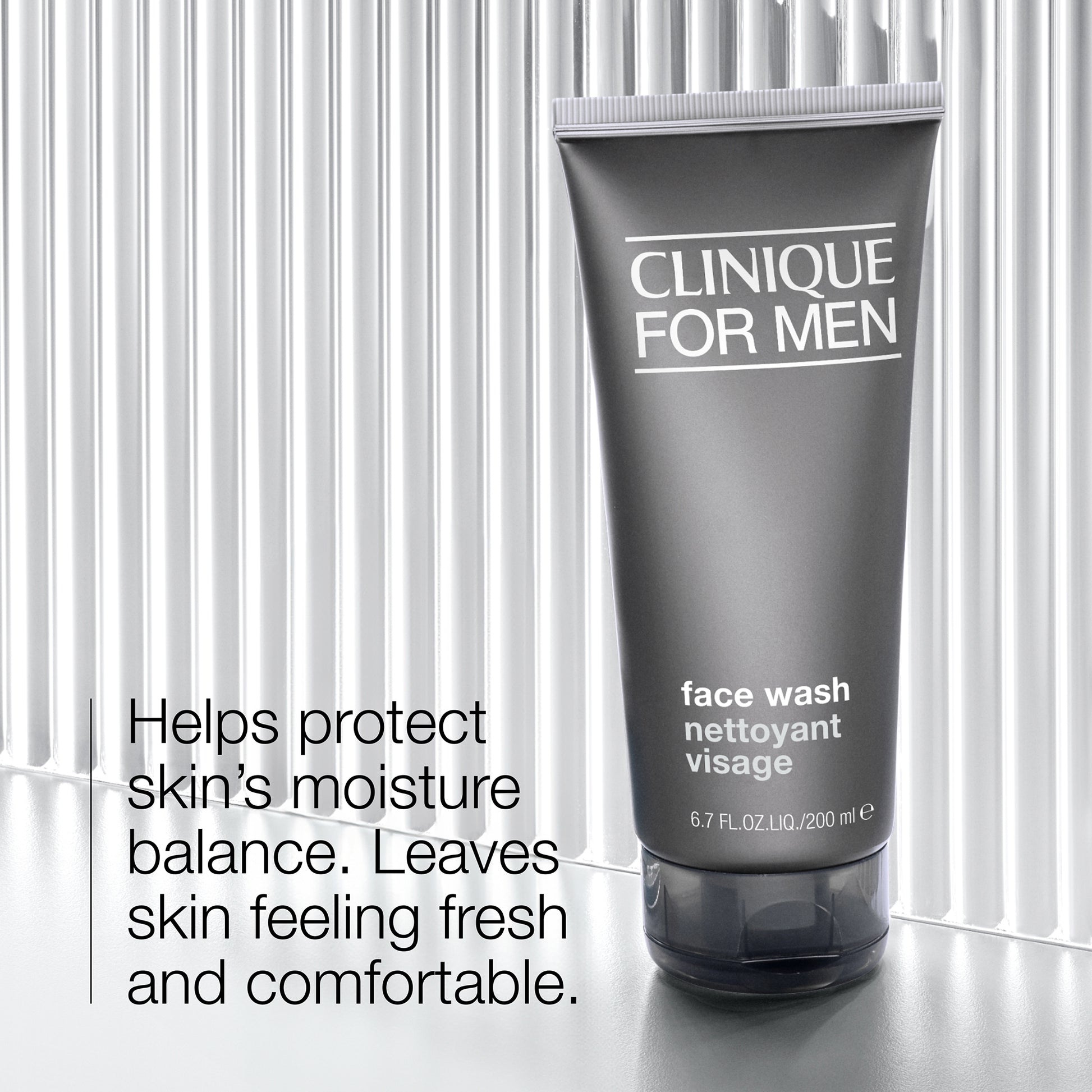 This face wash is suitable for all skin types, from normal to dry skin and is the perfect addition to any skincare routine. It is recommended that you use this moisturiser twice daily, both morning and night. Simply lather the liquid between the palms with warm water, then massage on to damp skin and through any facial hair. This product not only removes dirt and oil from skin but leaves facial hair soft and silky. Rinse the product out of facial hair and skin before towel drying. Follow up with shaving routine as usual. Clinique recommends partnering this wash with an exfoliator and moisturiser from the Clinique for Men collection.