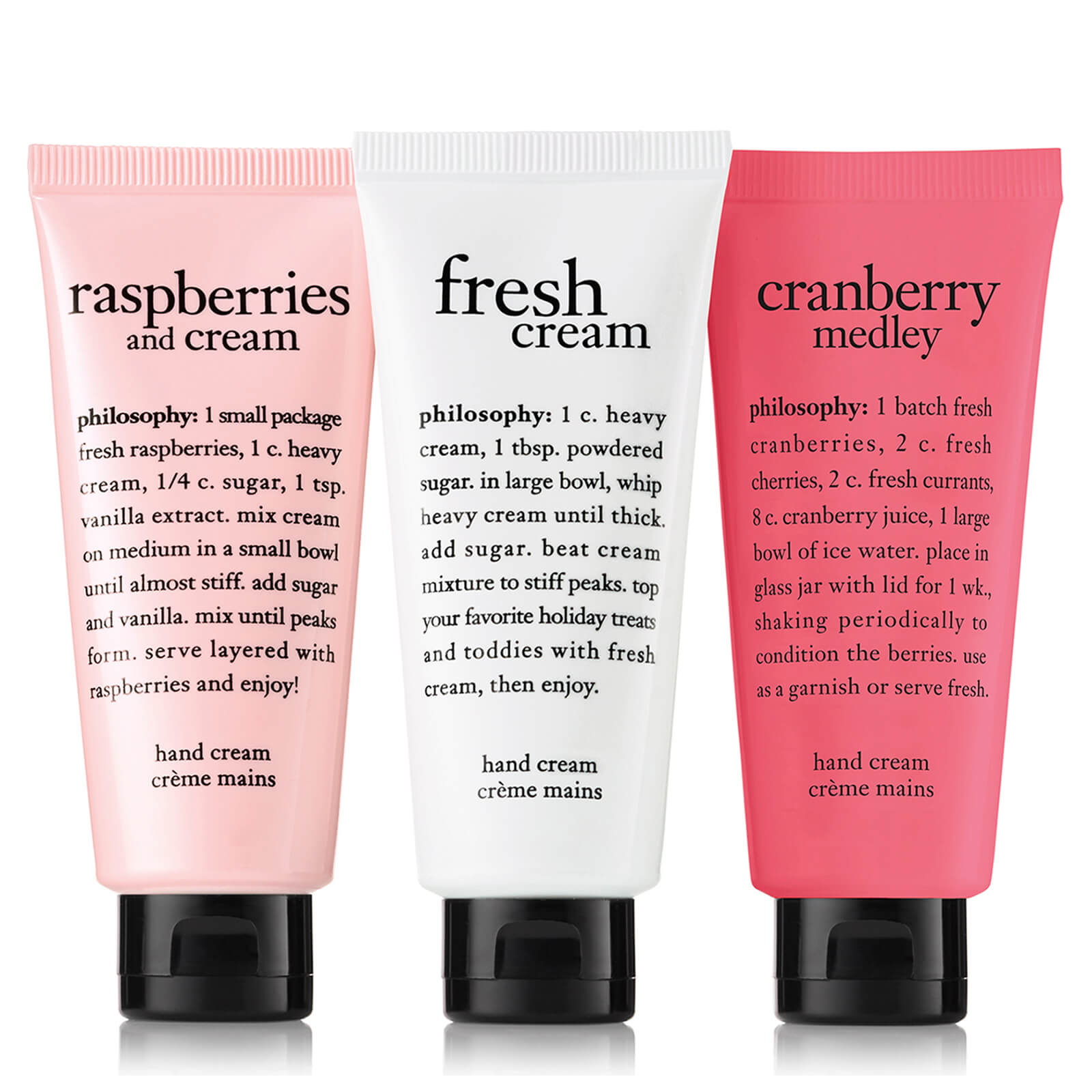 3 x Hand Cream in ‘Fresh Cream’, ‘Raspberries and Cream’ and ‘Cranberry Medley’ (3 x 30ml)