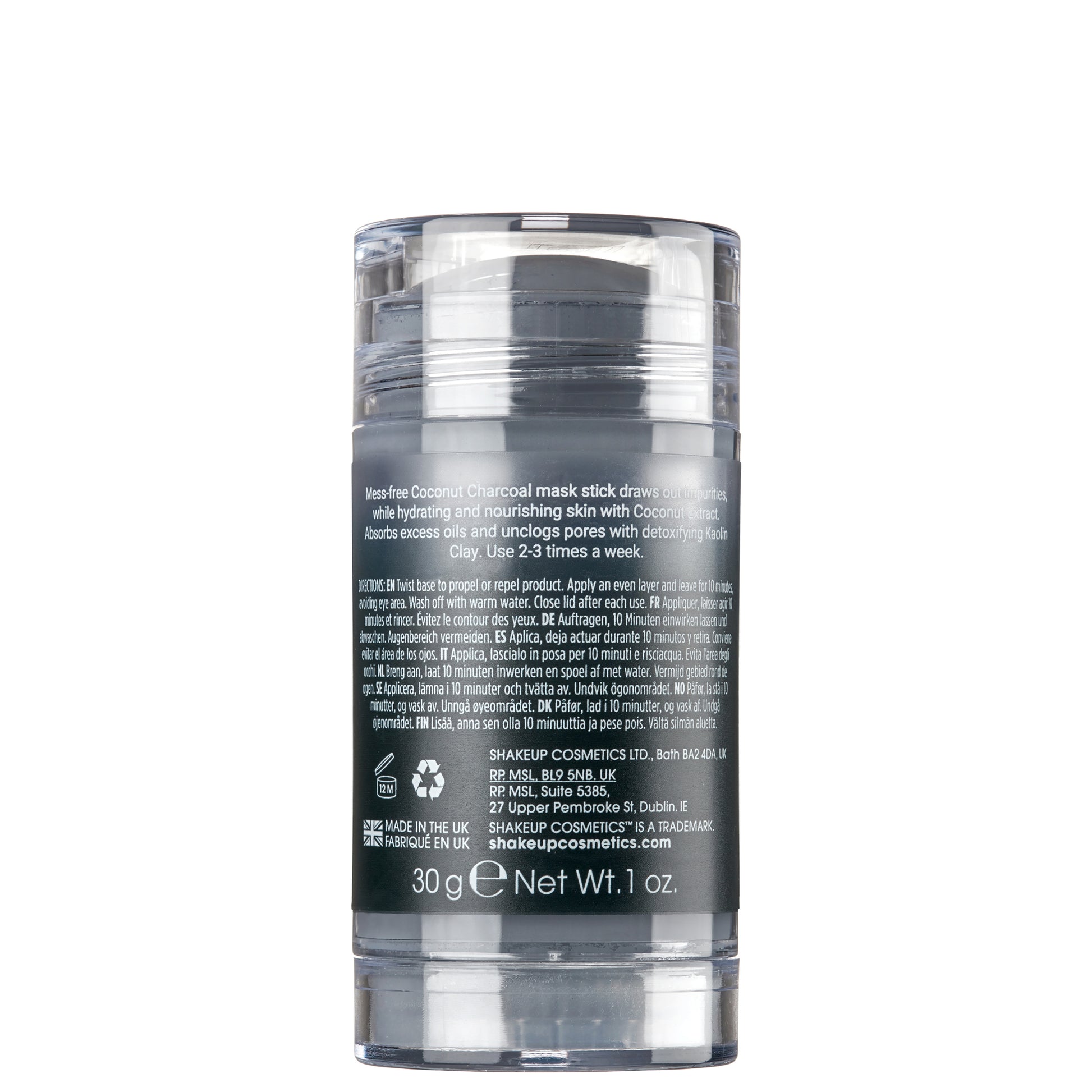 Mess-free Coconut Charcoal mask stick draws out impurities, while hydrating and nourishing skin with Coconut Extract. Absorbs excess oils and unclogs pores with detoxifying Kaolin Clay. Use 2-3 times a week. Vegan friendly, cruelty free.