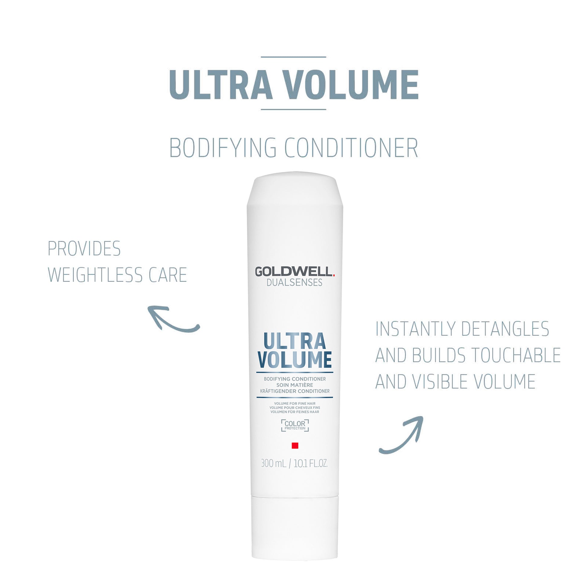 Ultra Volume Bodifying Conditioner instantly detangles and builds touchable and visible volume. It provides weightless care.