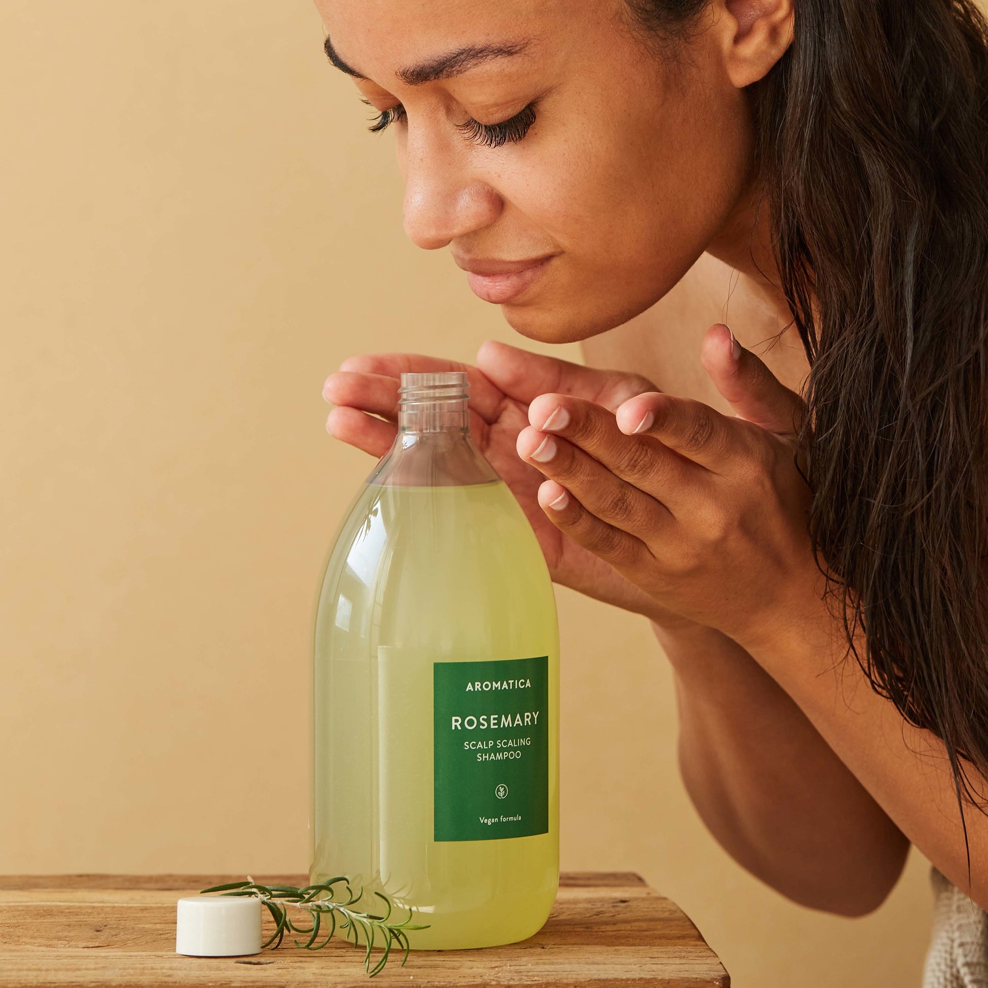 AROMATICA Rosemary Scalp Scaling Shampoo is a rejuvenating and strengthening shampoo that removes dead skin cells on the scalp. Gently removes dandruff while nourishing sensitive scalp and weak hair with natural ingredients.