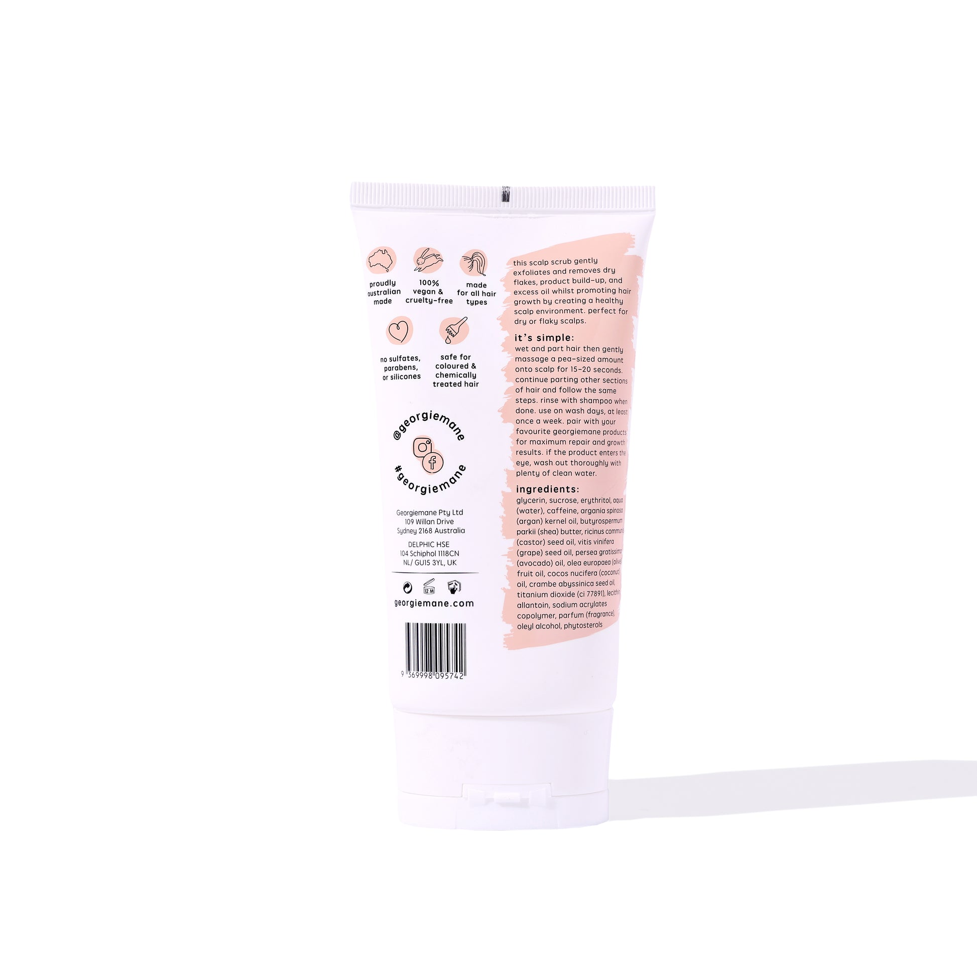 Georgiemane scalp scrub gently exfoliates the scalp, removing dry flakes, product build-up, and excess oil while promoting hair growth by creating a healthy scalp environment for optimal hair growth.