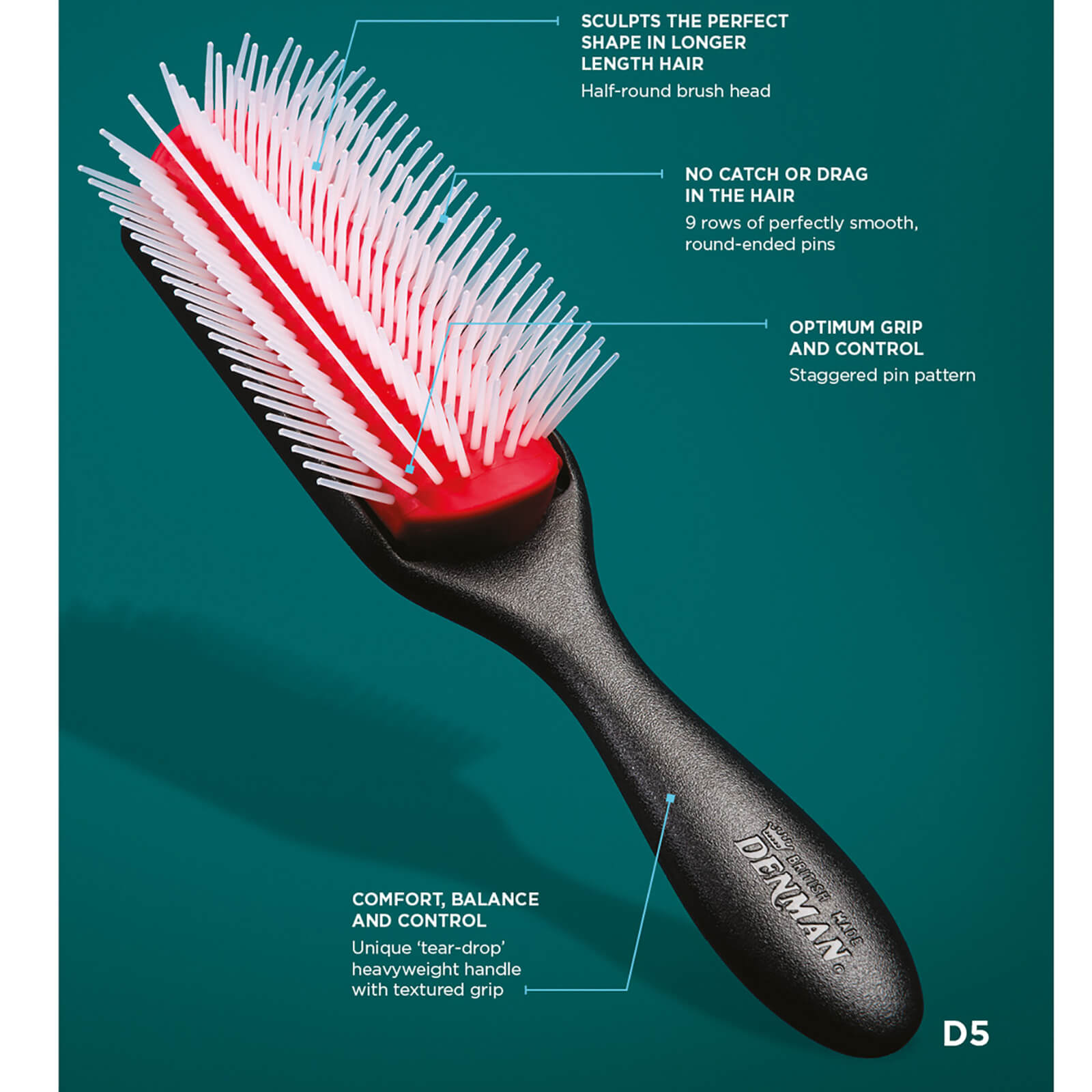 The Denman D5 Extra Large Styling Brush uses its increased weight to expertly sculpt and shape locks during blow-drying and styling to deliver visible root lift. With nine rows of staggered nylon pins to create natural-looking volume and movement, the hairbrush boasts a textured handle for improved grip and control. Ideal for detangling thick hair and gently separating curls, the brush helps you to create soft, smooth and salon-worthy results.