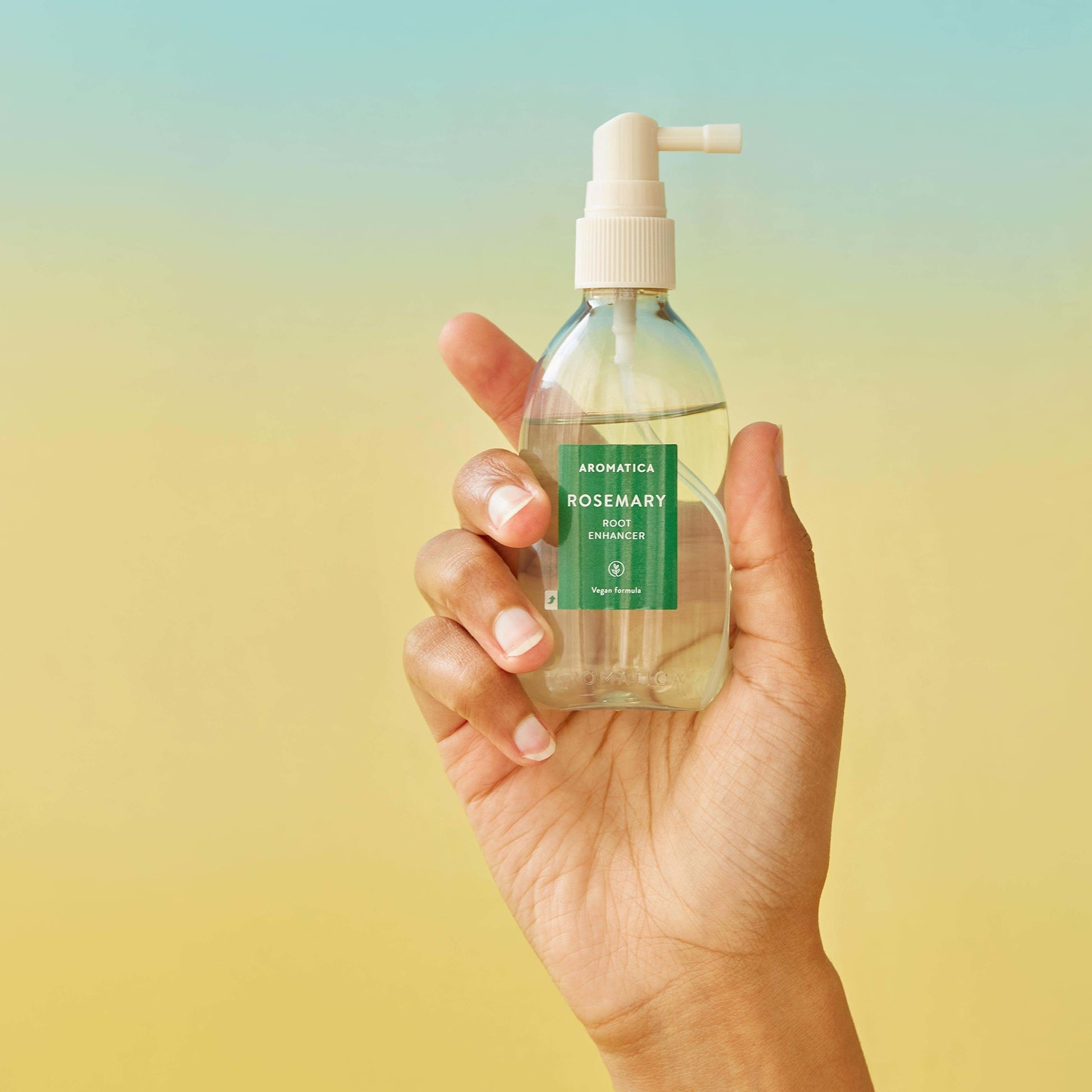 AROMATICA Rosemary Root Enhancer contains 99.5% natural ingredients to strengthen weak hair making it resilient and healthy. This essence tonic spray is packed with Vitamin B7 Rosemary, biotin, Black-Food Complex (black beans, black rice, black sesame, black pepper, mulberry) that helps maintain strong healthy roots. The scent of rosemary lavender, spearmint oil helps relieve stress at the same time and gives a refreshing finish.