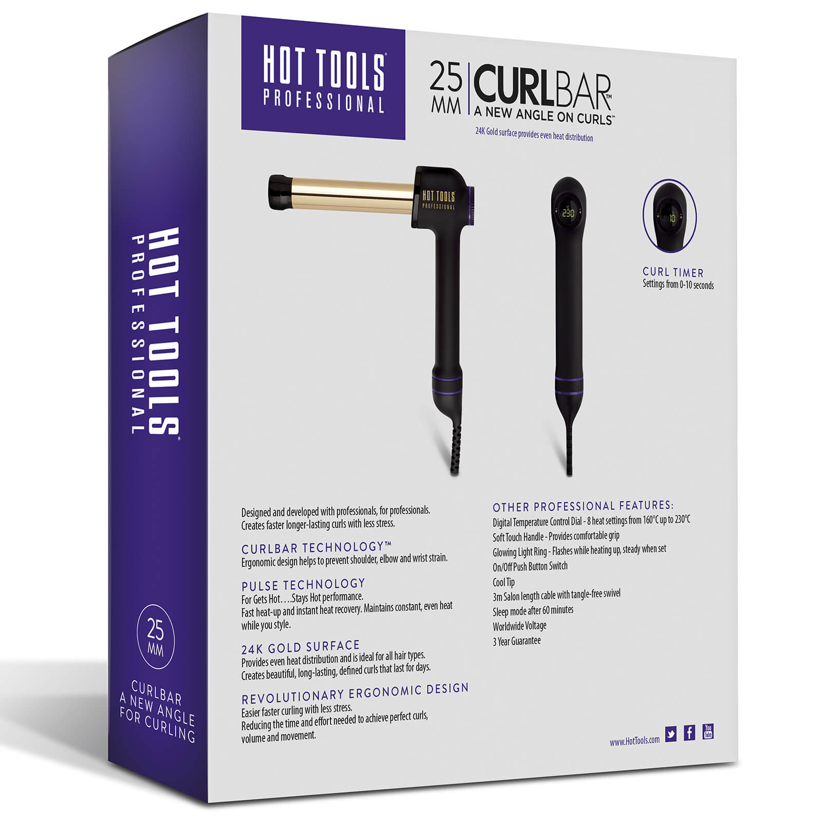 This uniquely shaped curling iron is ergonomically designed for comfort and ease of use, making it easier than ever to create perfect long-lasting curls without straining your arms. The 25mm barrel size is perfect for creating a range of looks; from tight, defined curls, to loose, beachy waves.