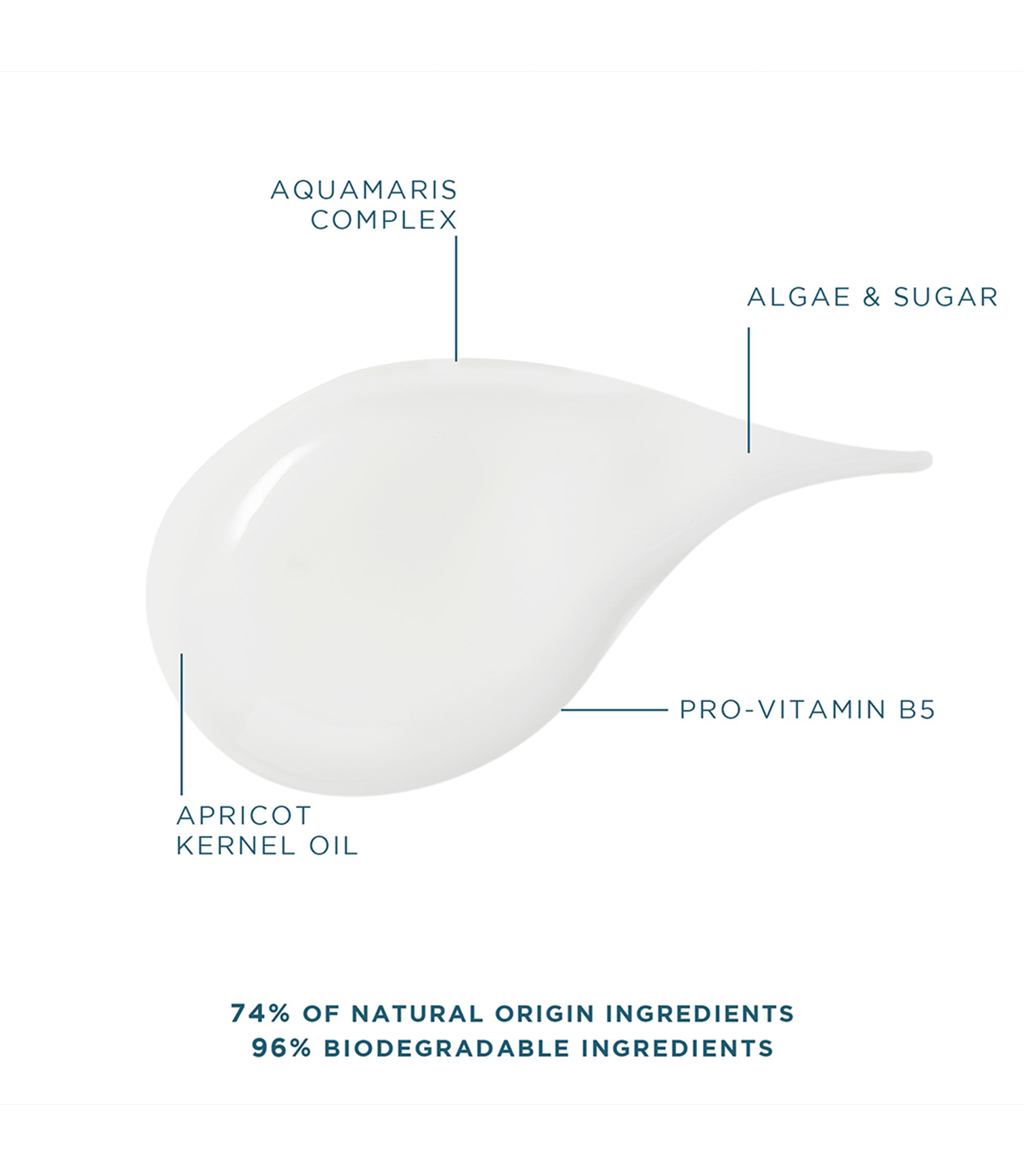 Aqua/Water/Eau, Glycerin, VP/DMAPA Acrylates Copolymer, Anhydroxylitol, Caprylic/Capric Triglyceride, Caprylyl Glycol, Citric Acid, Dicaprylyl Carbonate, Furcellaria Lumbricalis Extract, Glyceryl Stearate, Glyceryl Stearate SE, Hydroxyacetophenone, Hydroxyethylcellulose, Hydroxypropylammonium Gluconate, Hydroxypropylgluconamide, Lauryl Glucoside, Maltitol, Maris Aqua/Sea Water/Eau De Mer, Panthenol, Parfum (Fragrance), PEG-100 Stearate, Pelvetia Canaliculata Extract, Polyquaternium-37, Propylene Glycol, Prunus Armeniaca (Apricot) Kernel Oil, Quaternium-87, Stearamidopropyl Dimethylamine, Undaria Pinnatifida Extract, Xylitol, Xylitylglucoside, Benzalkonium Chloride, Benzyl Alcohol, Ethylhexylglycerin, Phenethyl Alcohol, Phenoxyethanol, Sodium Benzoate, Sorbitan Oleate, Tartaric Acid, Citral, Citrus Aurantium Peel Oil, Citrus Limon Peel Oil, Coumarin, Eugenol, Hexamethylindanopyran, Limonene, Linalool, Linalyl Acetate, Pinene, Rose Ketones, Tetramethyl Acetyloctahydronaphthalenes. B05741