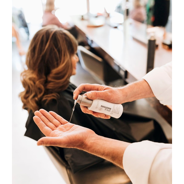 Distribute a small amount of Style Masters™ Brightastic™ hair styling primer evenly through wet hair to create the desired look. To use as a leave-in treatment for frizzy hair, apply a small amount on dry hair to control frizz and achieve a shiny finish.
