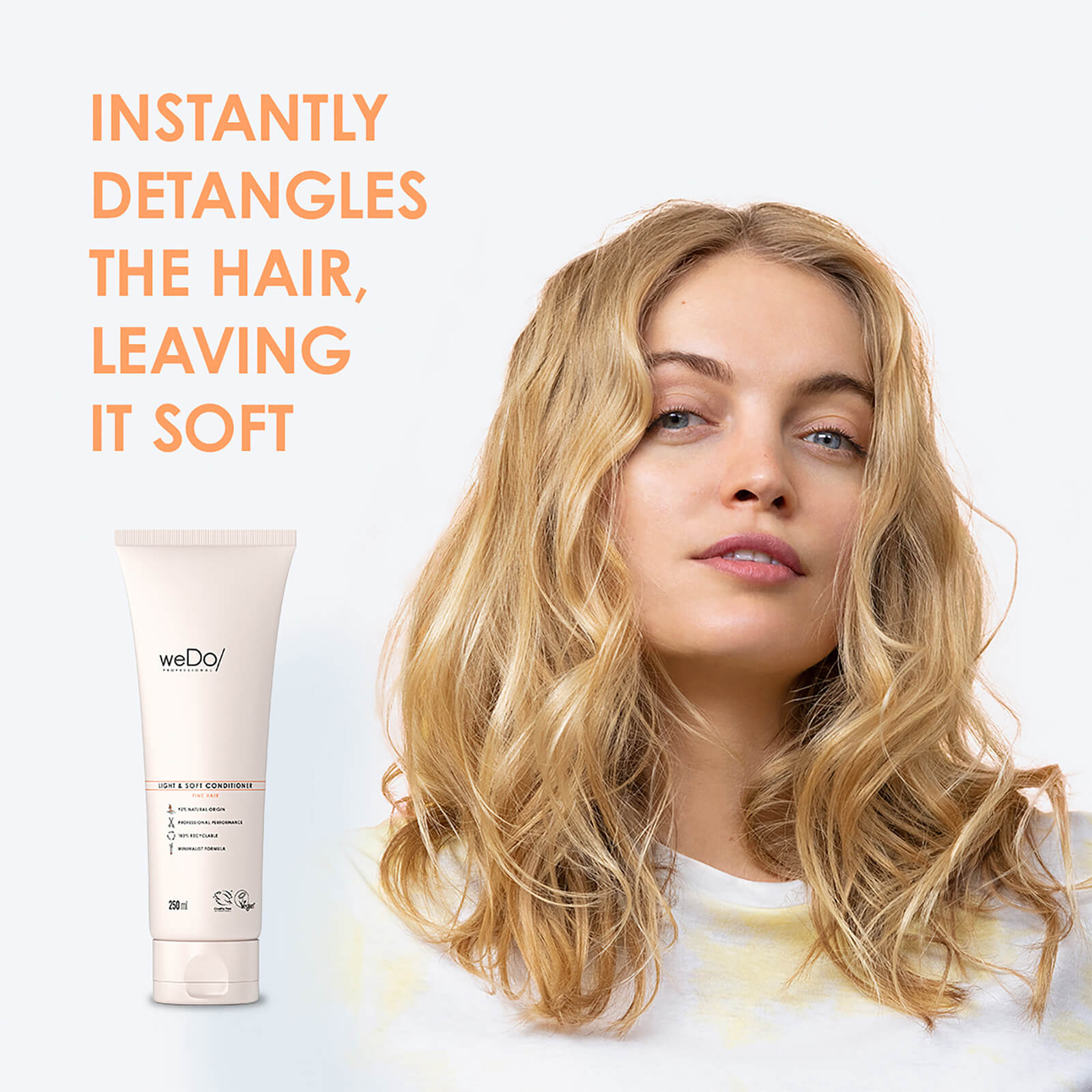 The Light & Soft Conditioner is a silicone free, lightweight conditioner, that instantly detangles the hair leaving it soft and manageable. Great for fine or dry hair, the conditioner is designed in professional haircare labs following a minimalist formula, with no silicones or artificial dyes. Dermatologically tested with 95% natural-origin ingredients, such as naturally-activated bamboo leaf water. It's vegan, cruelty free and+H7 in a recyclable plastic tube made with 50% recycled material.