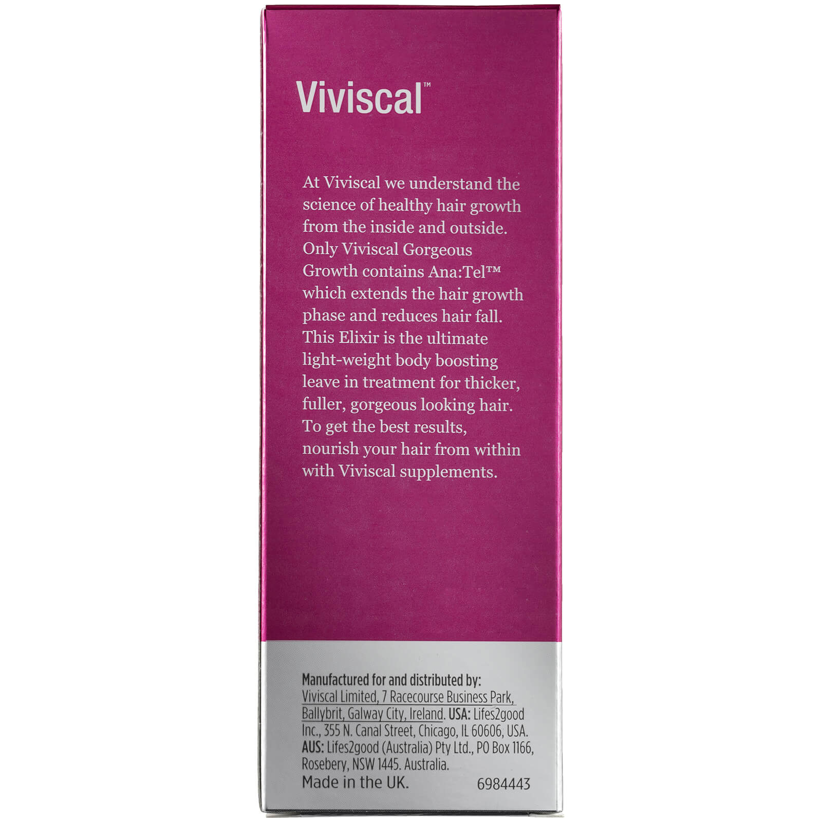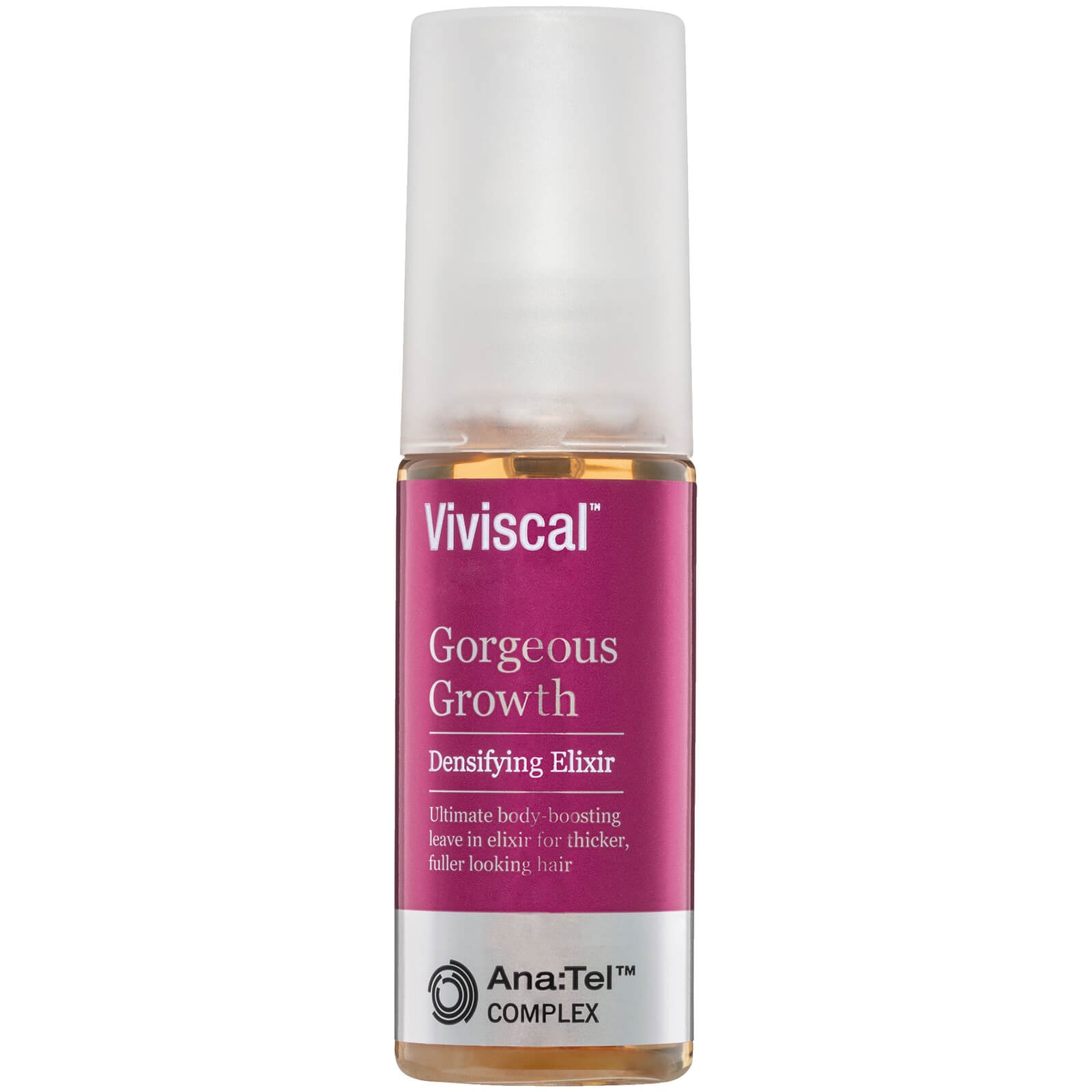 Viviscal Gorgeous Growth Densifying Elixir is the ultimate, body-boosting, leave-in treatment for thicker, fuller and gorgeous looking hair. 88% of consumers agree that Viviscal Gorgeous Growth Elixir does not weigh down hair or make it feel greasy+. Viviscal Densifying Elixir promotes gorgeous hair as part of the complete Viviscal Gorgeous Growth Densifying collection. Only the Viviscal Gorgeous Growth Densifying collection contains Ana:TelTM, a proprietary complex that includes clinically tested ingredients derived from natural sources such as pea sprouts. Combined with Biotin, Keratin and Zinc, the Gorgeous Growth Densifying collection promotes the appearance of healthy looking hair growth. 8 out of 10 consumers said their hair appeared thicker and fuller after just 1 week of using the Viviscal Gorgeous Growth Range+.