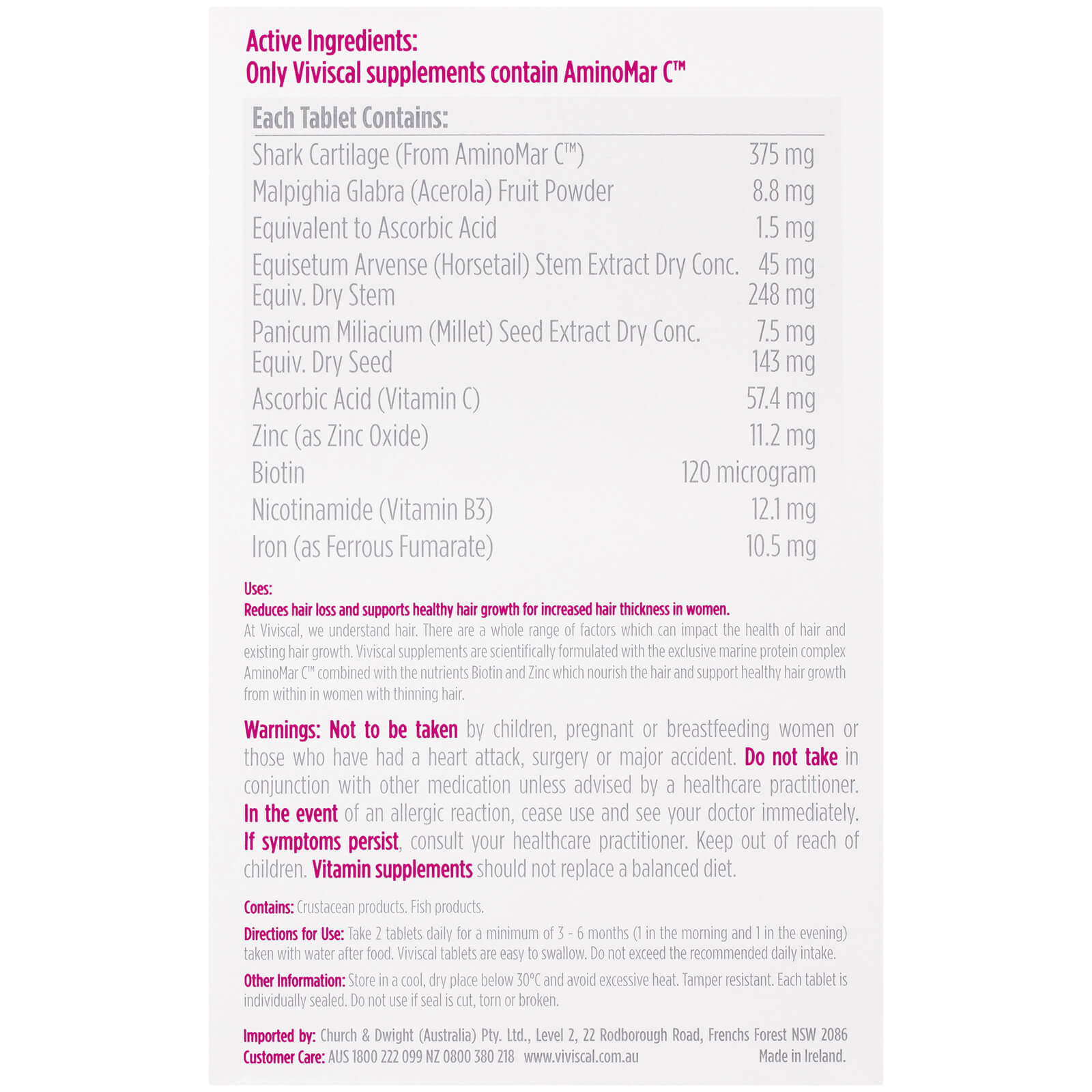 Viviscal supplements are fortified with the key nutrients Biotin and Zinc which help maintain normal healthy hair growth from within and the proprietary marine protein complex AminoMar CTM.