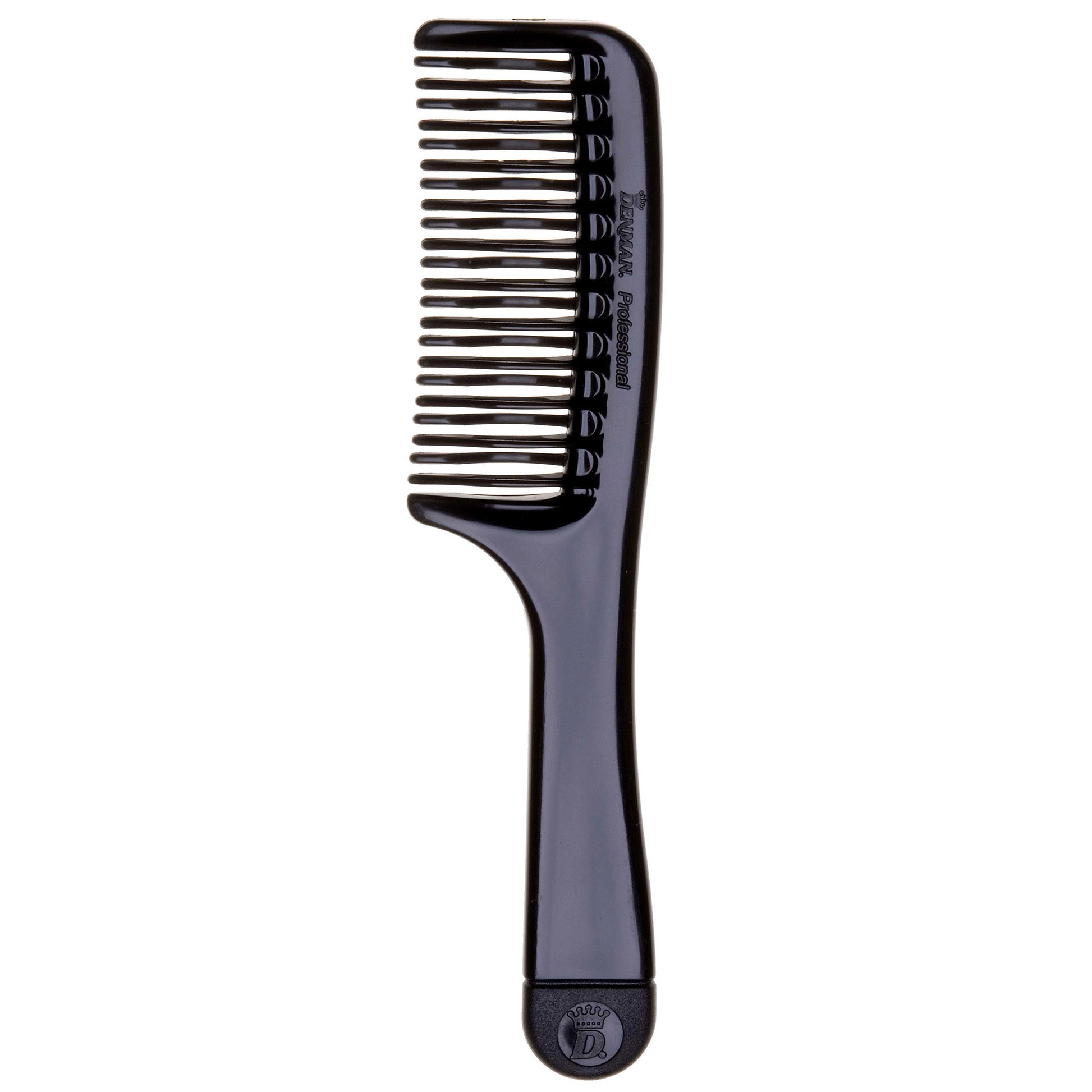 The Denman D24 Detangling Comb is professionally graded for damage-free detangling and even product distribution.This detangling comb has widely spaced teeth that are perfect for eliminating knots, as well as distributing styling products, shampoo and conditioner evenly throughout the hair. Its teeth are smooth and round-ended, making them gentle on the scalp and avoidant of irritation. This durable hair comb is heat, chemical and impact resistant, making it perfect for stylists and barbers. Achieve a refined and precise finish with the Denman D24 Detangling Comb in Black.
