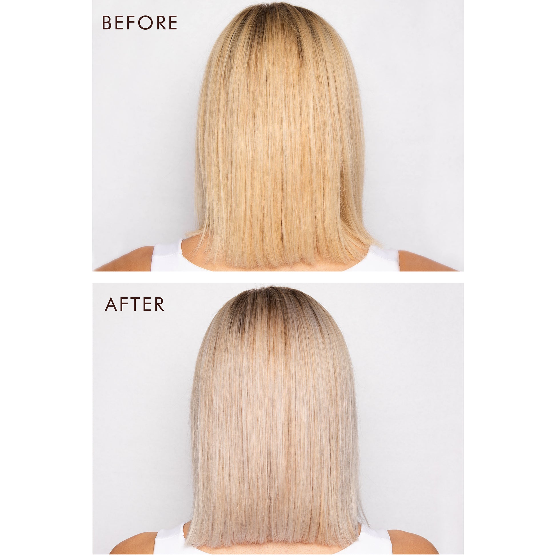 After shampooing with Moroccanoil Blonde Perfecting Purple Shampoo, massage into hair for 1–2 minutes. For enhanced toning, leave on for up to 5 minutes. Rinse well.