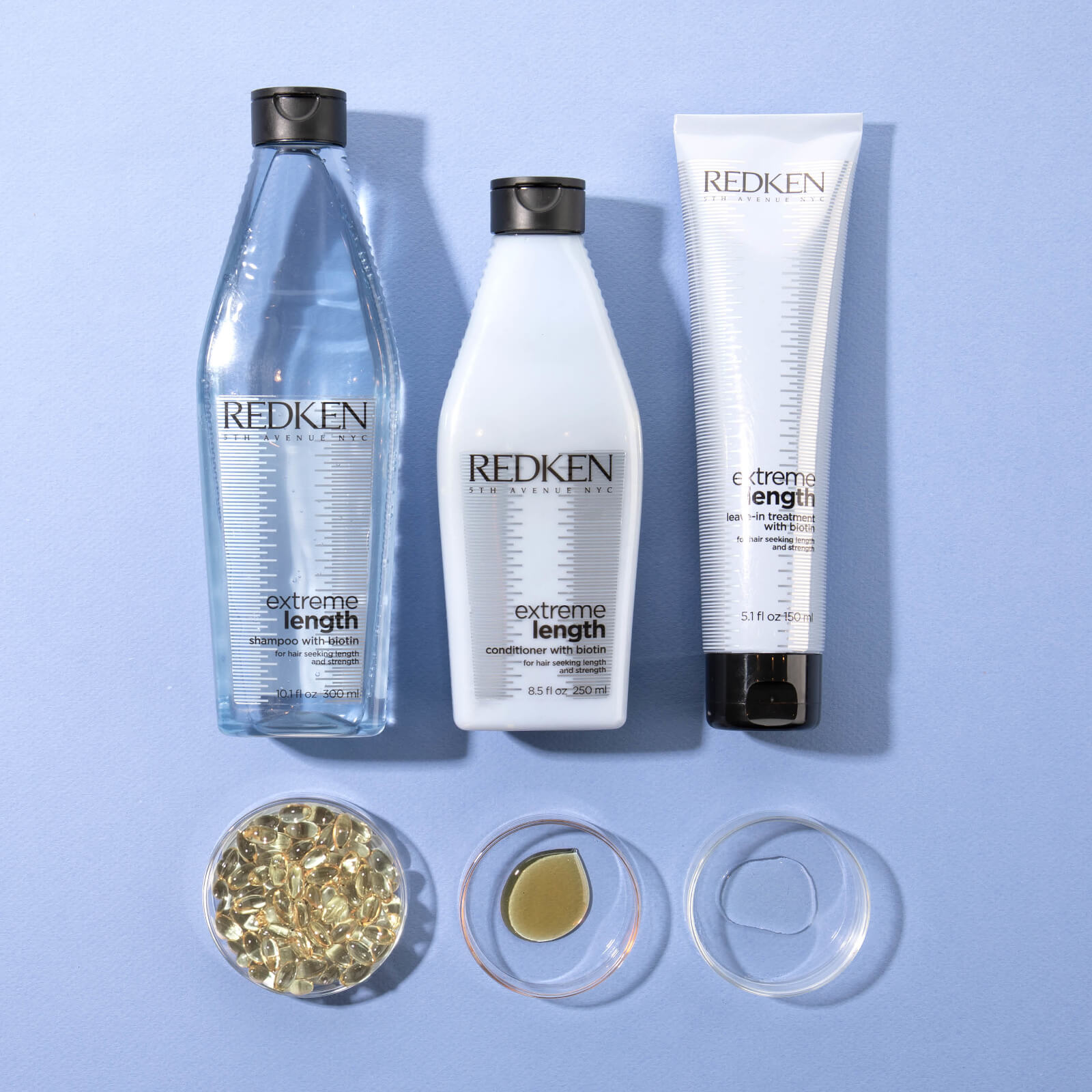 Redken's Extreme Length Shampoo with biotin strengthens damaged hair and helps hair to grow longer and stronger. Extreme Length Shampoo helps prevent breakage to promote your strongest, healthiest hair.