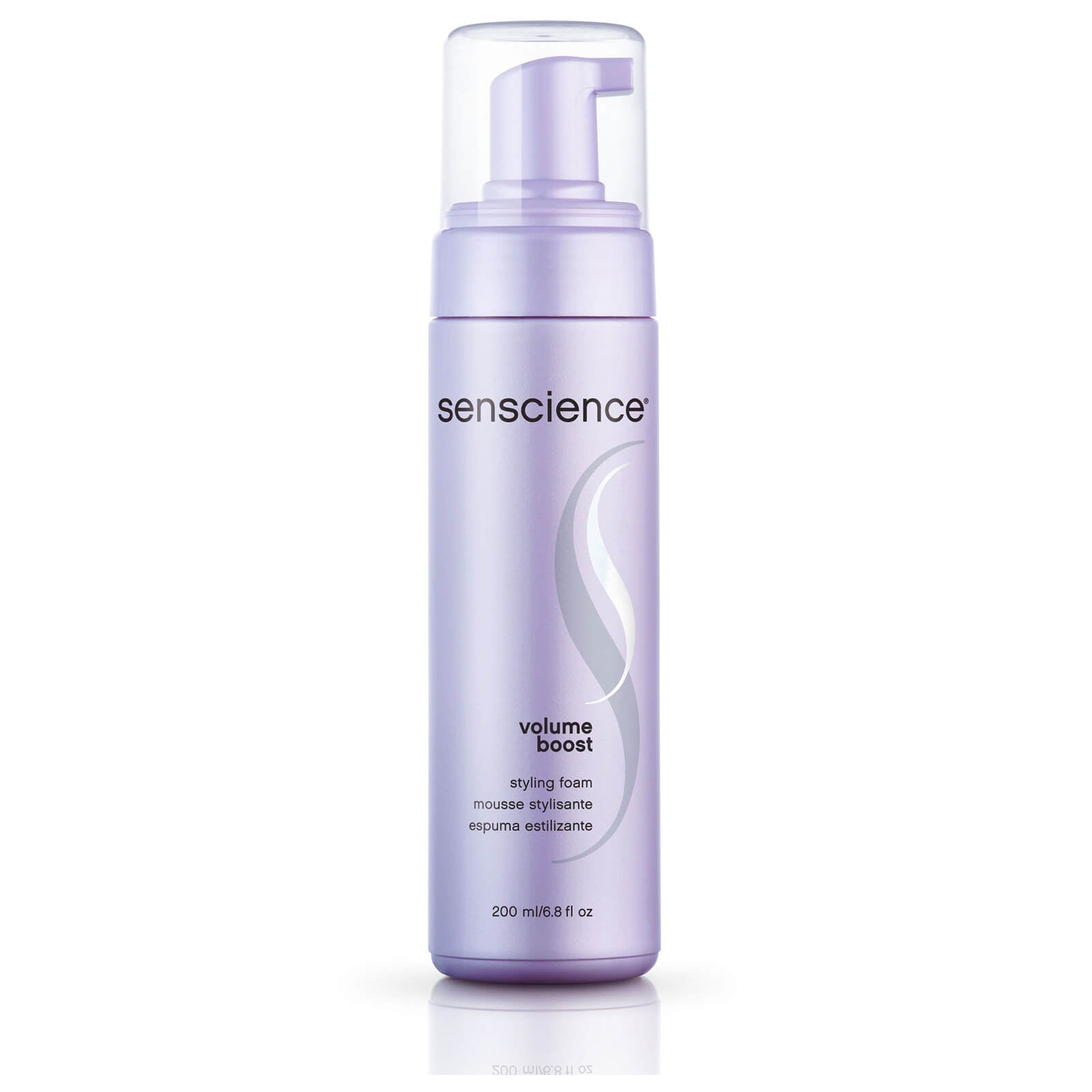 - Dispense 3-4 pumps of Senscience Volume Boost Styling Foam into your palm