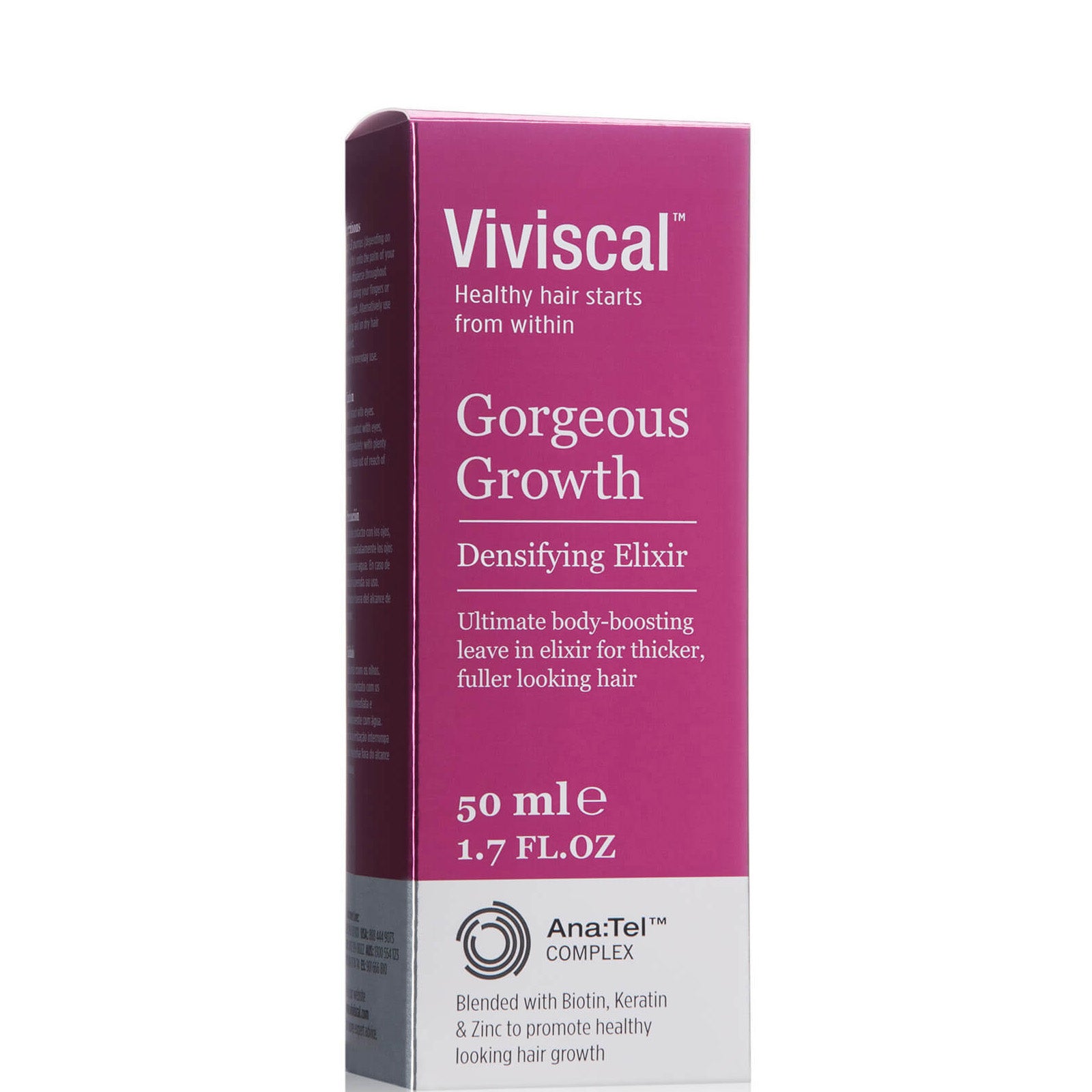 Viviscal Gorgeous Growth Densifying Elixir is the ultimate, body-boosting, leave-in treatment for thicker, fuller and gorgeous looking hair. 88% of consumers agree that Viviscal Gorgeous Growth Elixir does not weigh down hair or make it feel greasy+. Viviscal Densifying Elixir promotes gorgeous hair as part of the complete Viviscal Gorgeous Growth Densifying collection.