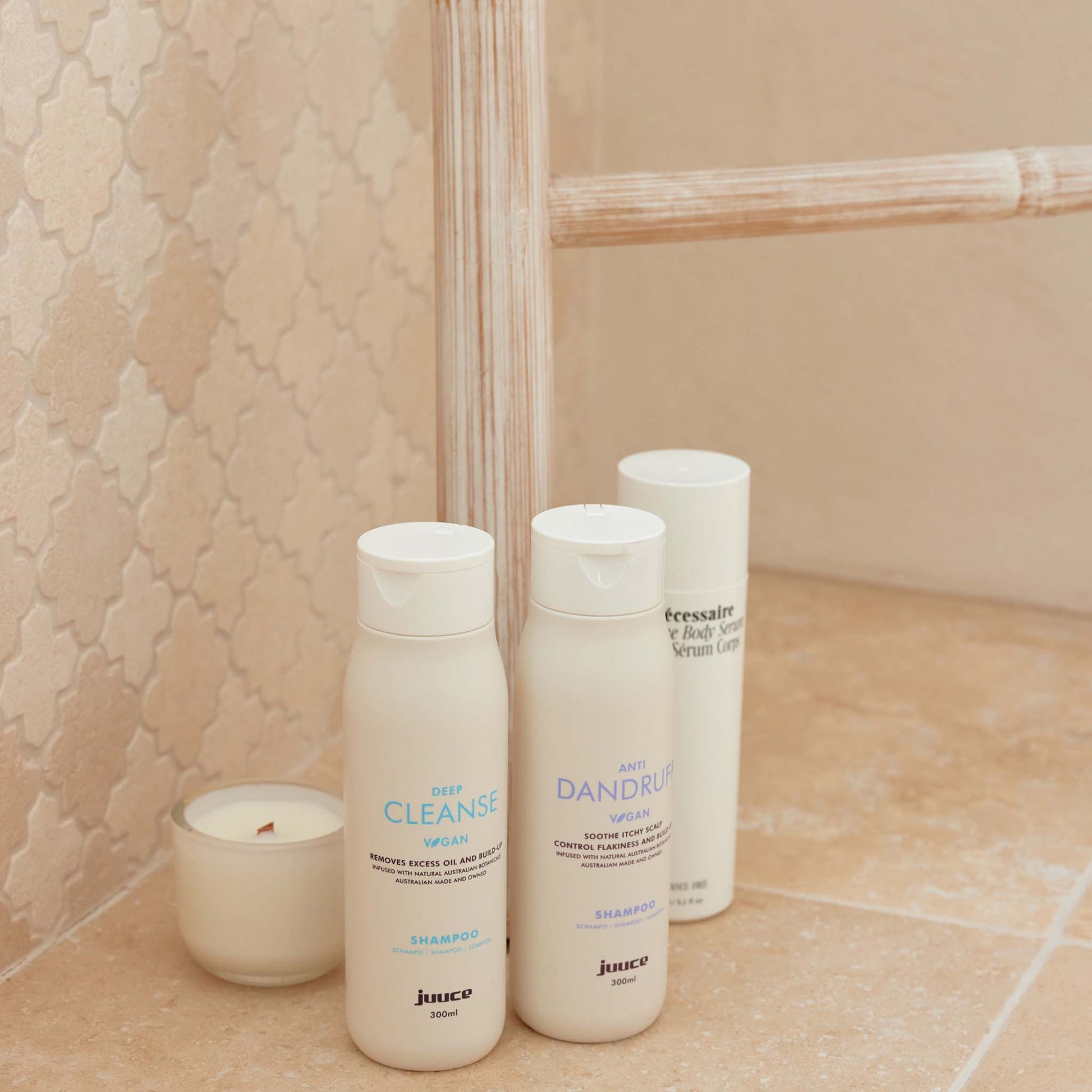 Juuce Deep Cleanse Shampoo removes product or chlorine build up and controls an oily scalp.